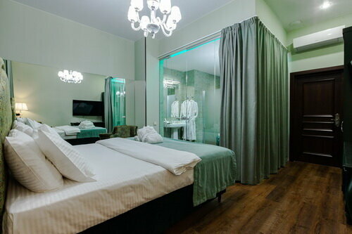 номер уютный, кровать волшебная, ванна за стеклом — огонь! ) 2 минуты пешком до прогулки по набережной. провели волшебно время и за это спасибо)