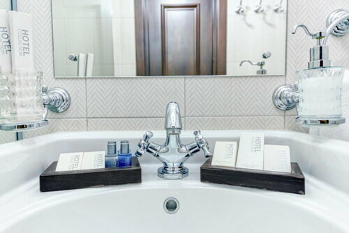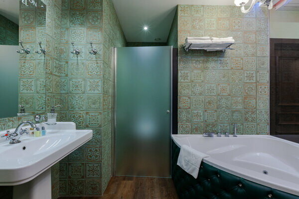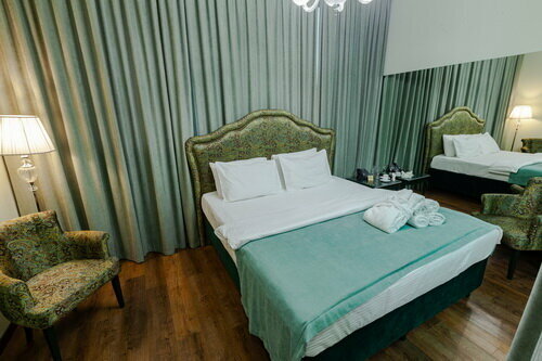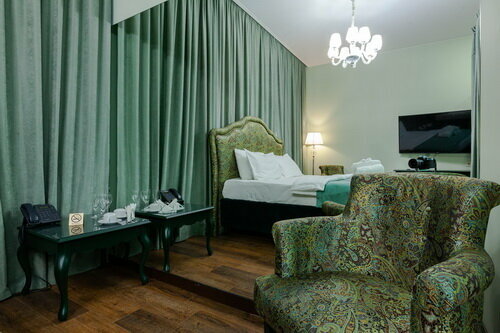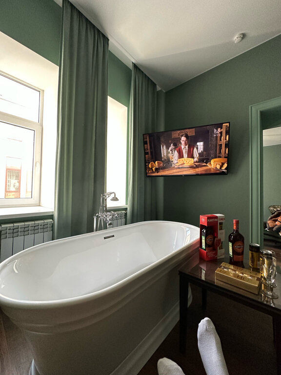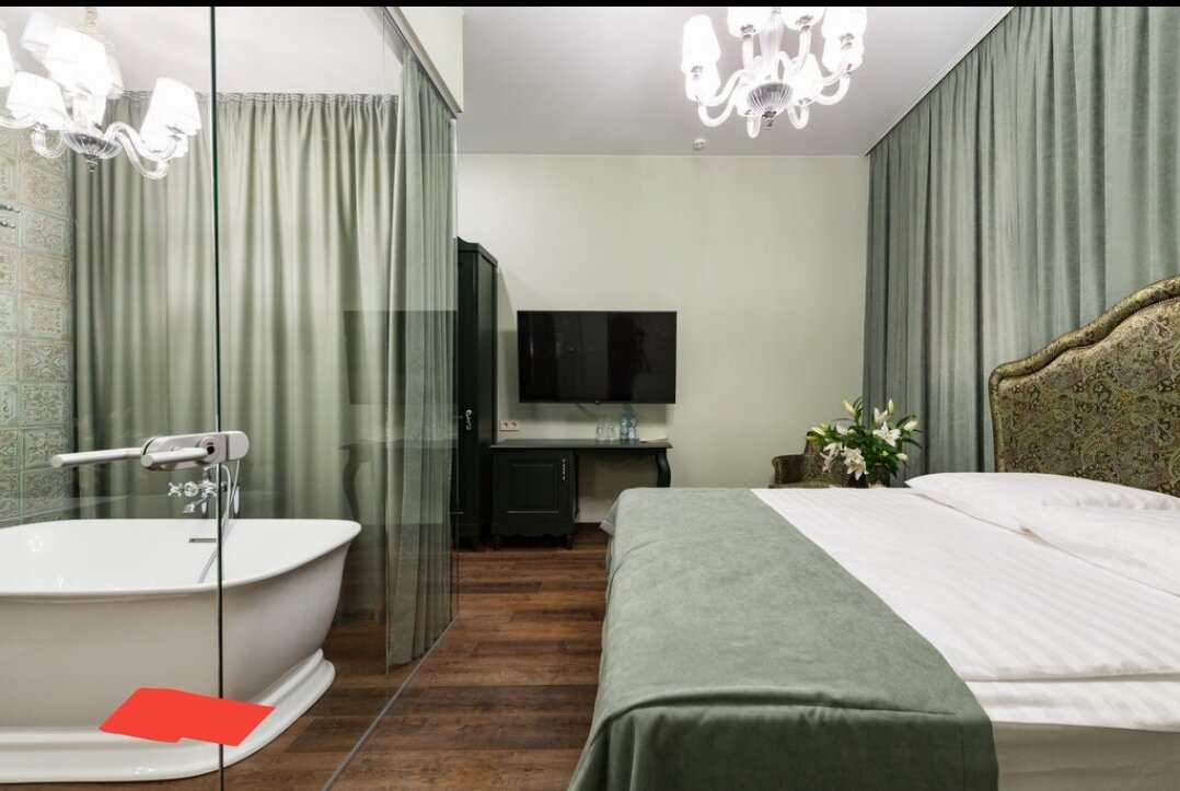 Люкс-номер подойдёт для свадебной фотосессии (утро невесты). Красивые люстры и ванная. Зелено-оливковые тона. Расположение выгодное, рядом Красная площадь и Собор Христа Спасителя. А также выход к реке. Цены адекватные. Завтрак очень плотный, вкусный. Не шведский стол, меню по дням недели.