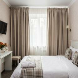 Удобства: — Номера (от 4000 до 9000 ₽/ночь) с кондиционером, Wi-Fi, ТВ, мини-баром, сейфом и санузлом. Есть гипоаллергенные варианты и номера с джакузи. — Бесплатные: парковка, камера хранения, интернет. — Дополнительно: бизнес-центр, завтрак (оплачивается отдельно), платный трансфер, прачечная.