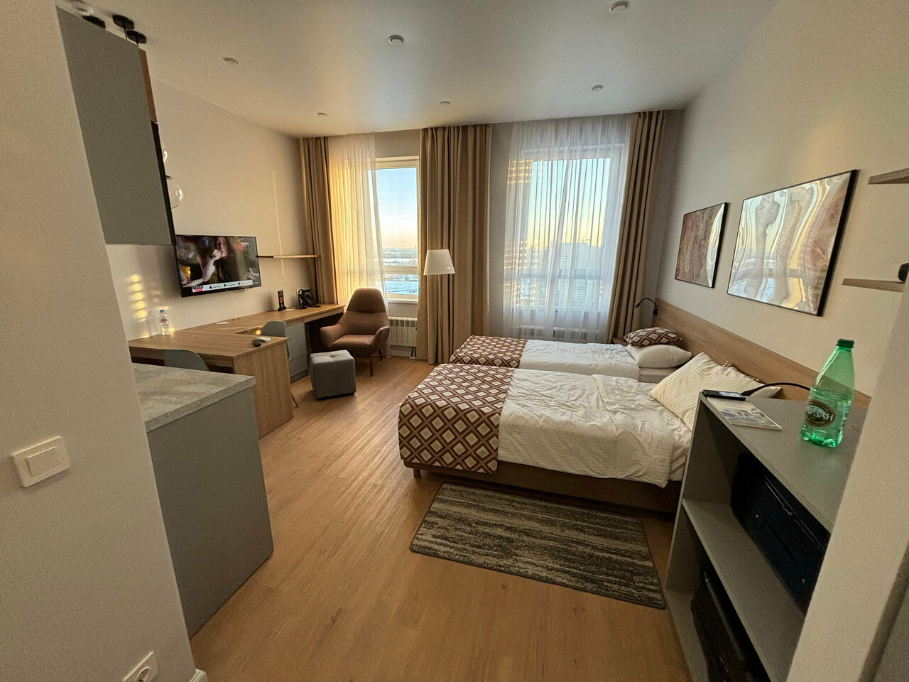 Проживал тут, находясь в командировке. Удобное расположение, недалеко от аэропорта (Шрм), мало людей и суеты. Но с другой стороны будто и мало заведений для ужина, перекуса. Расположен комплекс по фиолетовой ветке метро, в 10 минутах станция Спартак. Много различных небольших магазинов. В аренду получаешь полноценную квартиру-студию, вполне чисто, оборудование квартиры (номера) не уставшее. Ресепшен скромный, не надоедливый. Для проживания командированным, или для недолгих остановок на небольшой период этот комплекс будет отличным выбором. Показалось, что можно добавить зону для уличных занятий (может я не нашел ее) с турниками, брусьями.