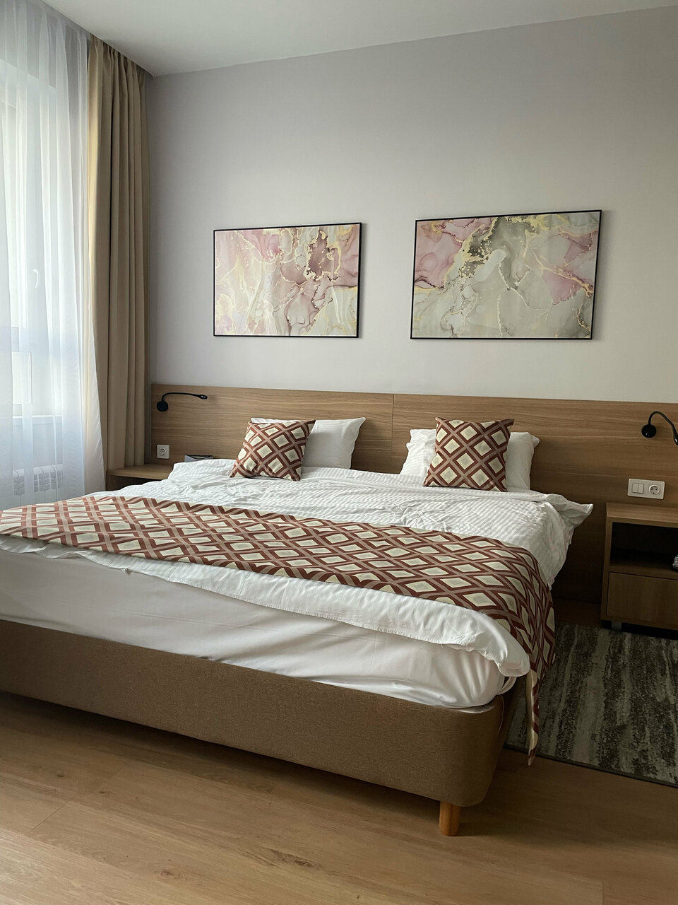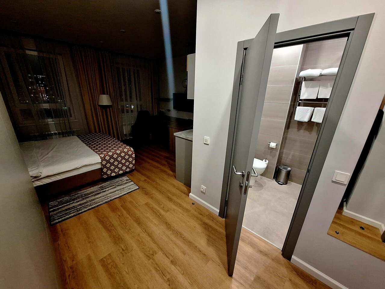 Хороший апарт-отель за разумные деньги. Очень близко к метро Спартак, идти 5-7 минут. В отеле предоставляют завтрак на выбор из трех вариантов за 700, но мы предпочли позавтракать в кафе в ЖК неподалеку. В отеле есть прачечная самообслуживания на -1 этаже, пользовалась утюгом и гладильной доской, они в хорошем состоянии. Справа от рецепции есть вендинговый и кофейные аппараты. Сами номера просторные и уютные. Мы останавливались на 1 ночь и никаких нареканий нет, поэтому рекомендую этот апарт-отель.
