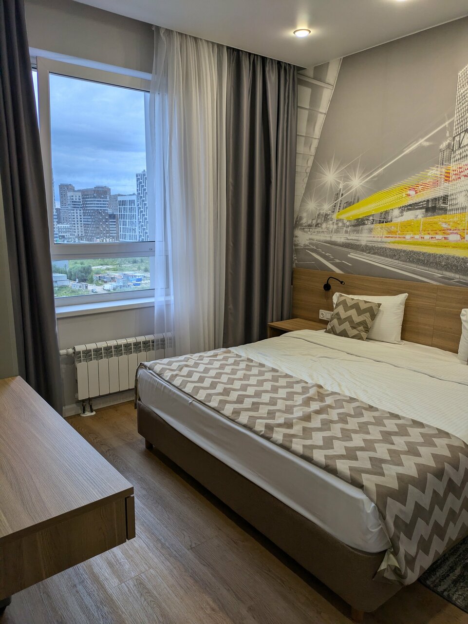Уютно, чисто, хорошая шумоизоляция. Приветливый персонал. От метро буквально 3 минуты. Единственно в чем было неудобство — не забыть купить питьевой воды, так как её предоставление в номер предусмотрено только в день заселения (1л), кулера тоже нет.