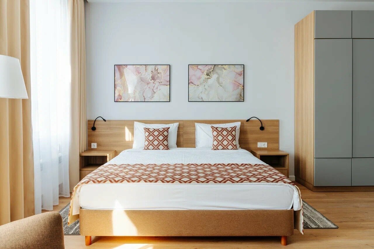Удобства: ✔ Круглосуточная стойка регистрации ✔ Бесплатная крытая парковка ✔ Бизнес-центр, коворкинг, прачечная ✔ Проживание с животными (платно) ✔ Бесплатные детские кровати (0-10 лет) ✔ Лифт, фен, утюг, посуда, микроволновка