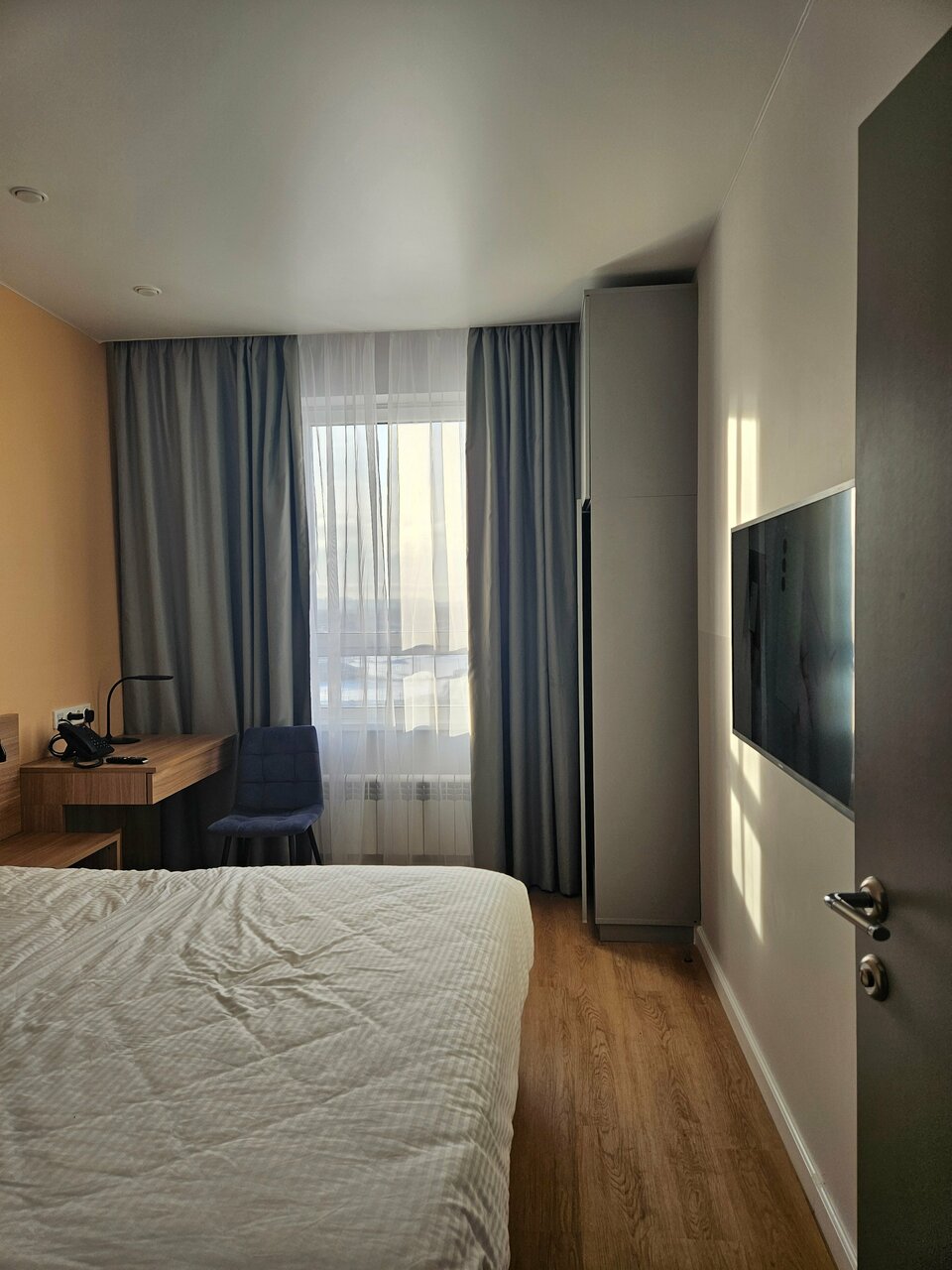 Гостиница новая, но убираются очень плохо, в первый раз дали номер с волосами и грязью в душевой, сразу же поменяли на другой номер, он был немного лучше, но следы от жирных рук чужие волосы, везде где только можно, это номер 1407 , видимо никто не убирается после гостей , если заглянуть под раковину в душевой, так там еще затирка после ремонта не смыта со стен, в чем сложность поддерживать чистоту в новой гостинице