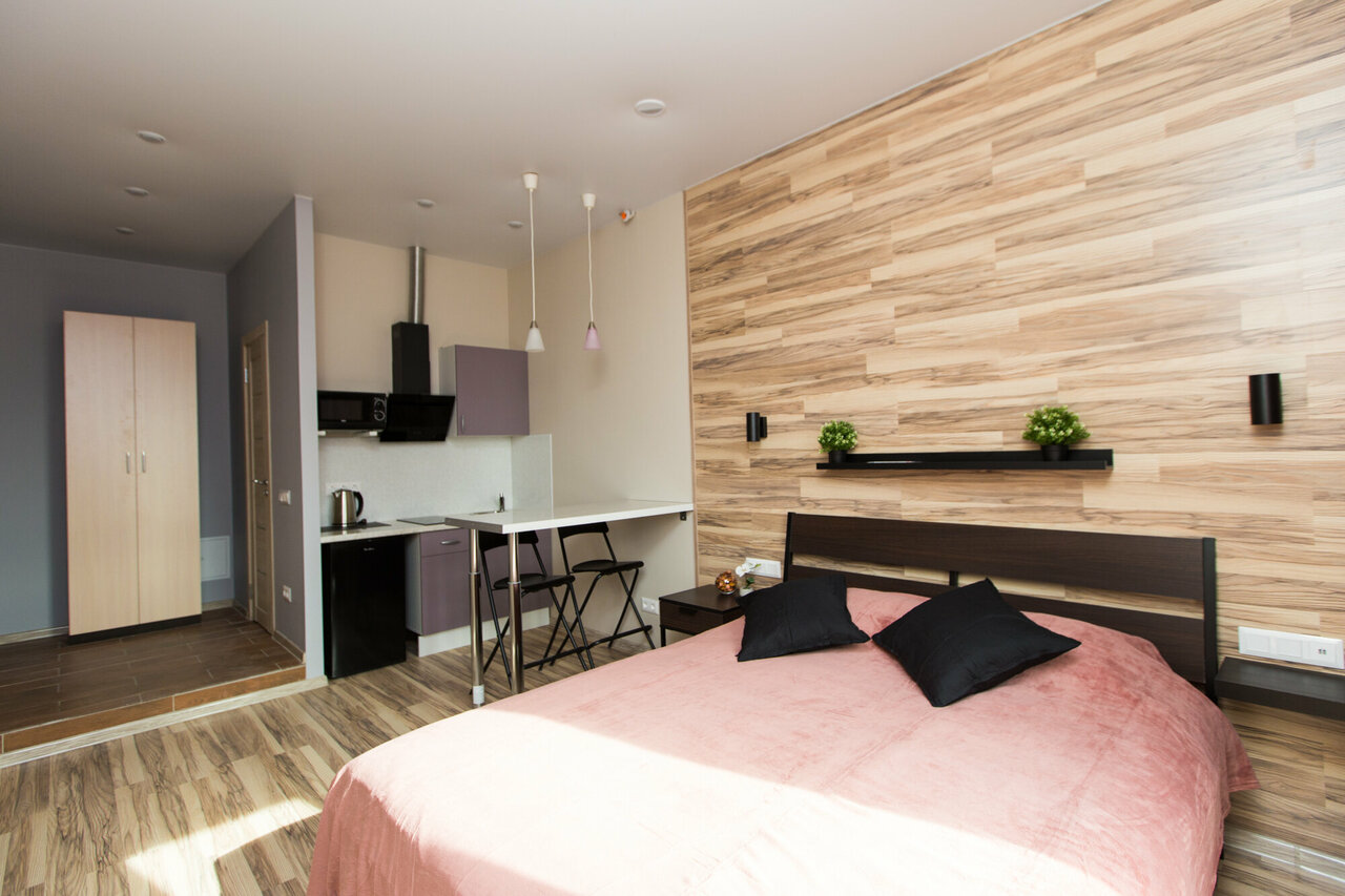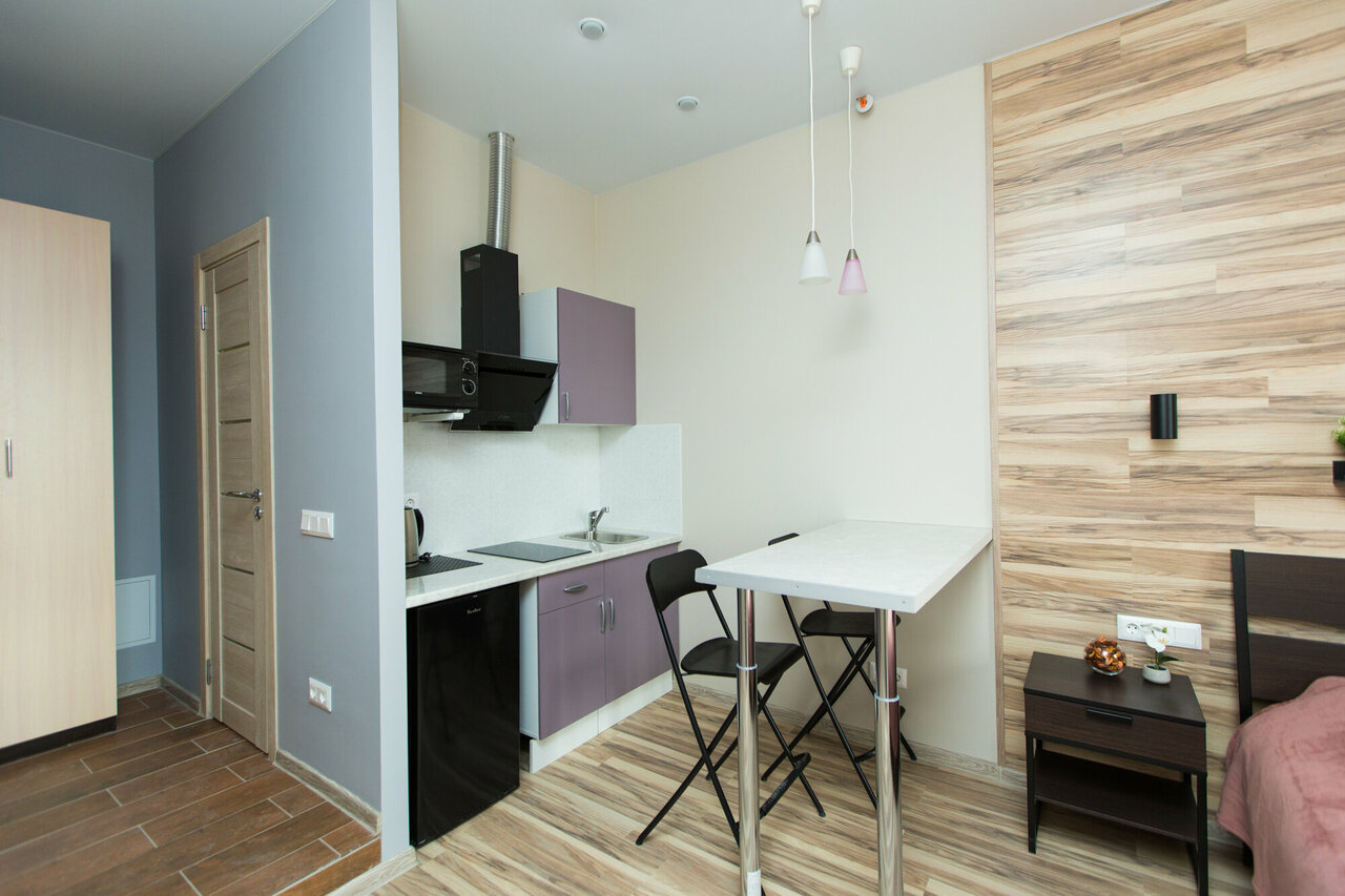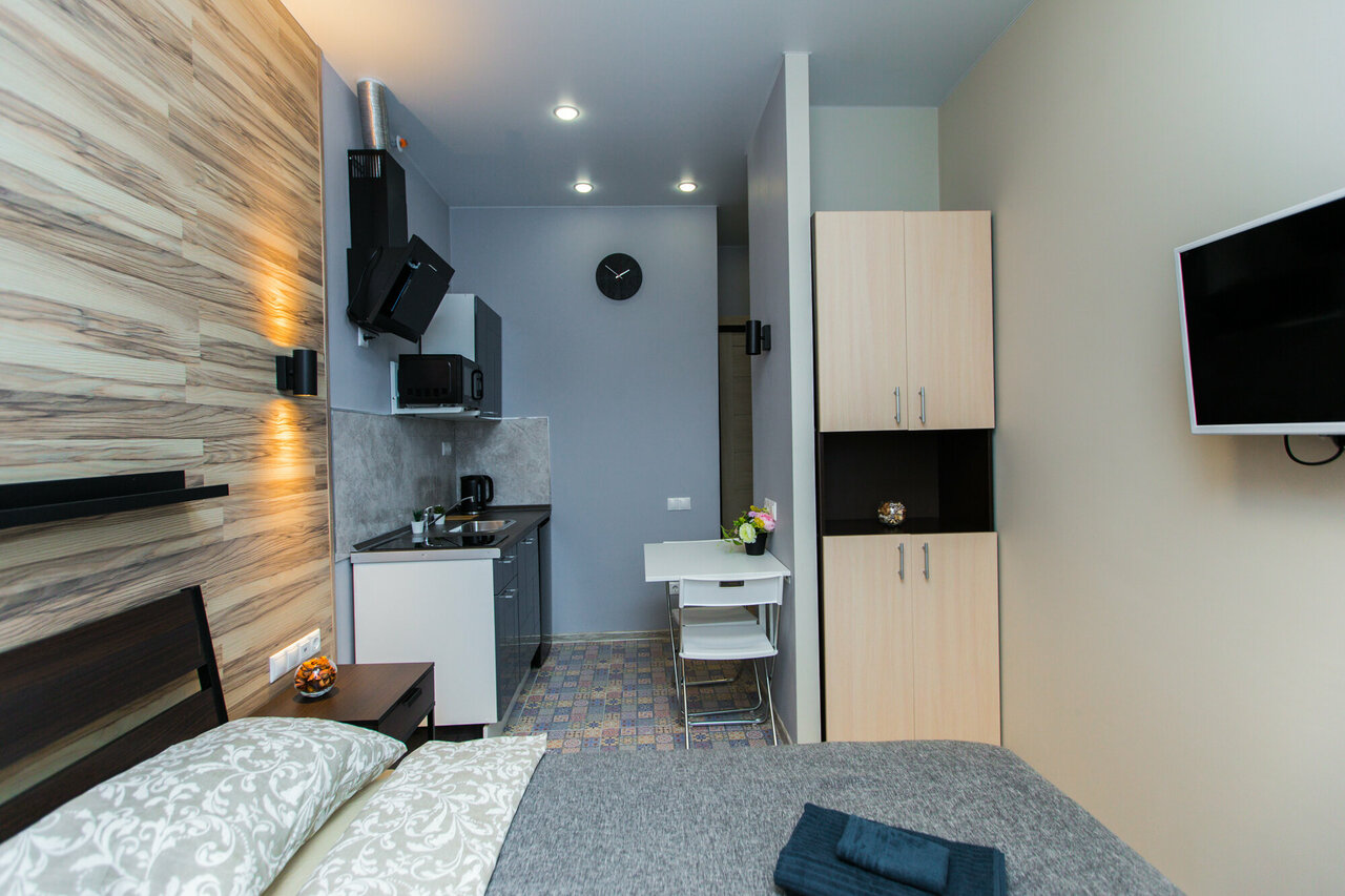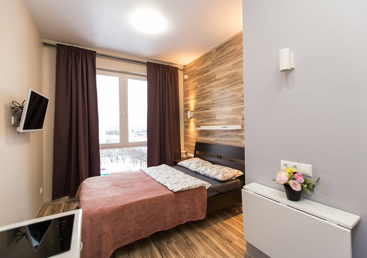 Отличные аппартаменты в хорошем районе не далеко от метро. В шаговой доступности магазины, аптеки. Сам номер хоть и небольшой, но уютный. В номере есть необходимый запас для комфортного проживания: прлотннца, фен, утюг, минимальный набор посуды, микроволновка и т.д. Операторы отвечают быстро и вежливо. Будем пользоваться услугами еще.