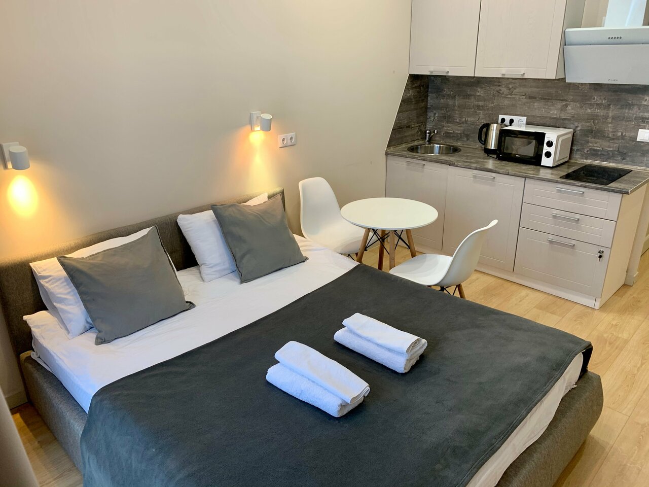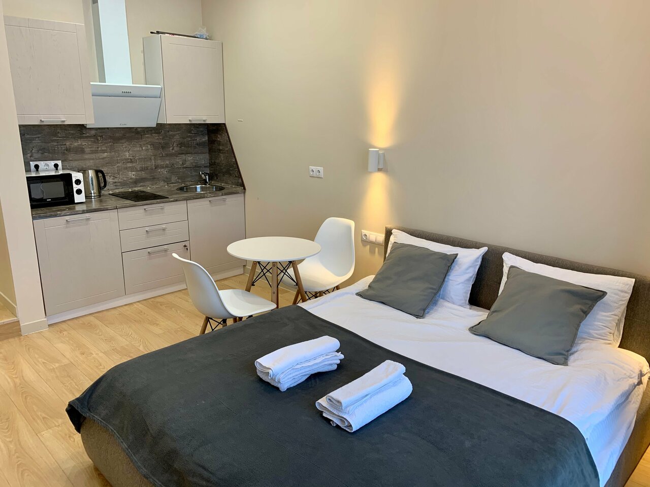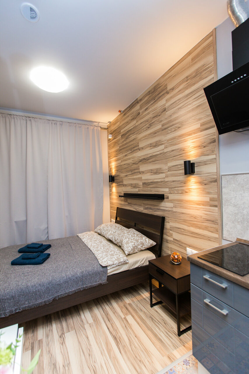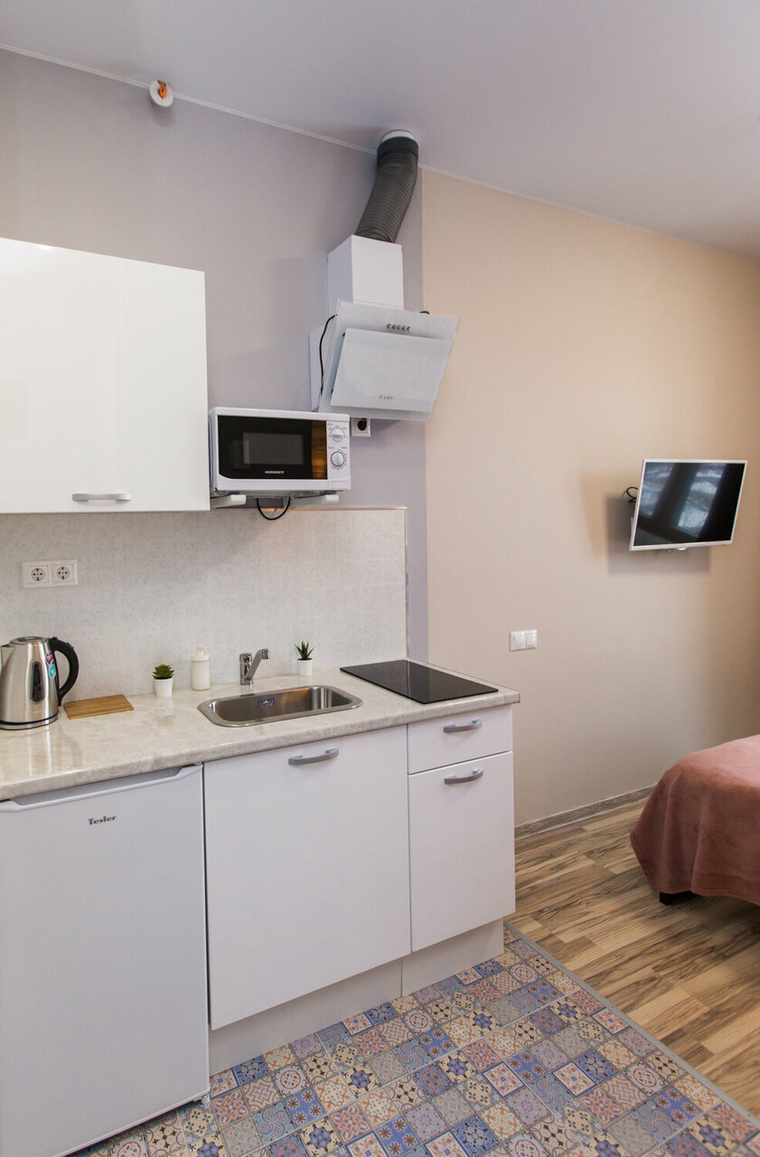 Отличные аппартаменты в хорошем районе не далеко от метро. В шаговой доступности магазины, аптеки. Сам номер хоть и небольшой, но уютный. В номере есть необходимый запас для комфортного проживания: прлотннца, фен, утюг, минимальный набор посуды, микроволновка и т.д. Операторы отвечают быстро и вежливо. Будем пользоваться услугами еще.