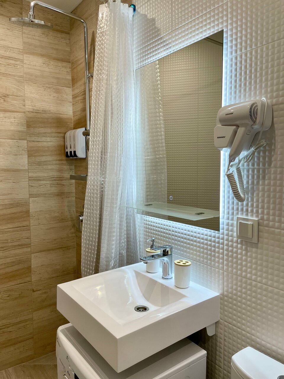 Не работает полотенцесушитель, вытяжка тоже. В целом не плохо, несколько дней можно пожить, но в таком месте только одному))вдвоём тесновато