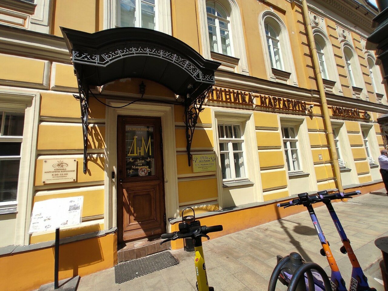 До. На маяковке находится в центре Москвы, почти на Тверской, в красивых старых переулках, до метро очень близко, в номере чисто, все, что нужно имеется(халат, тапочки, зубной набор) есть кафе при отеле, завтраки на выбор по меню, вполне приемлемый и вкусные. Вынужден был уезжать поздно, без оформления позднего выезда оставил сумку на ресепшене. Все отлично, рекомендую. 6000 сутки.