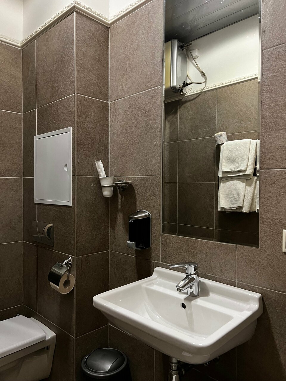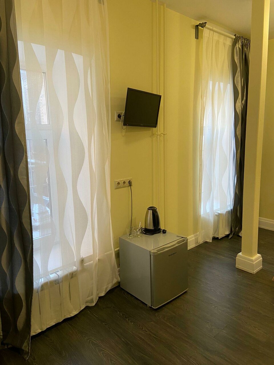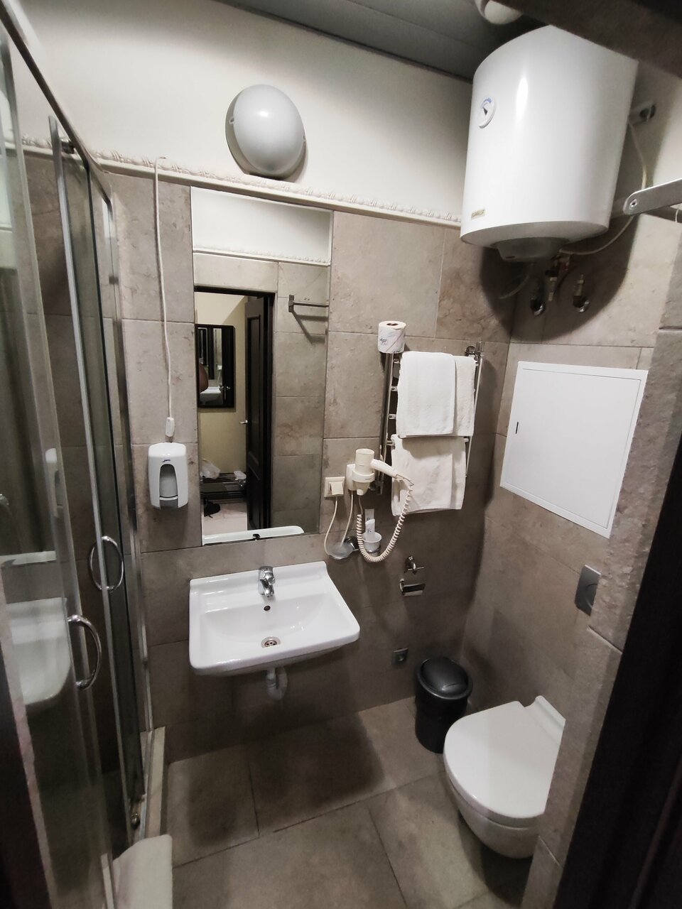 Отличное место в центре города за адекватную цену. Обслуживание на твёрдую 5-ку. Есть возможность поесть в кафе на первом этаже, метро в шаговой доступности. Возможно тонковаты стены между номерами, но это предположение, т.к. жили не в сезон, соседей не было. В номере всё необходимое, бонусом 3Д гарнитура за умеренную плату. Спасибо отелю за приятный ненавязчивый сервис!