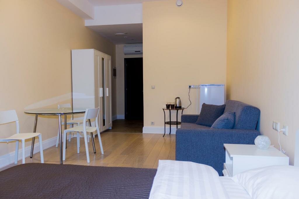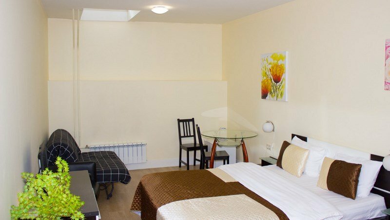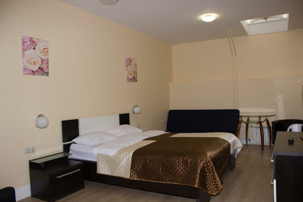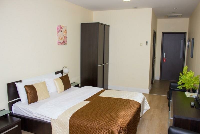Расположение огонь, грубо говоря центр, патрики, метро в 5 минутах Взяли двухместный номер стандарт плюс, собственный душ и туалет, всё чисто, тапочки полотенца, зубные щетки и паста, шкаф с плечиками, кондиционер, телевизор, бар, очень понравилось, доволен Персонал хороший, все здороваются, шума нет, двери надежные хорошо закрываются, буду возвращаться снова