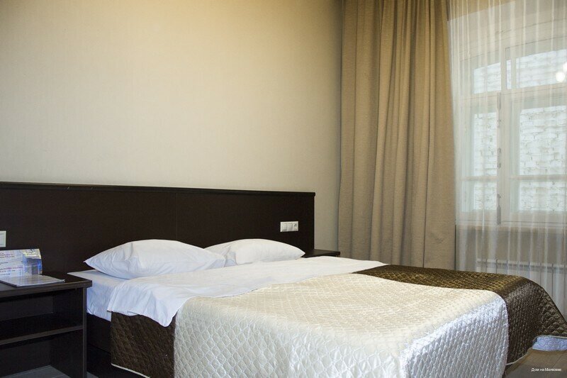 Огромное спасибо за отдых в гостинице. Встретили радушно. В номерах есть все необходимое — 2 отдельные заправленные кровати, комод с большими ящиками для одежды, шкаф, телевизор, работает кабельное телевидение, есть бесплатный wi fi, туалет с душем и раковиной, 2 чистых полотенец, большой и поменьше, но не маленький, туалетная бумага, жидкое мыло, зуб.щетка в вакуумной упаковке, тапочки в вакуумной упаковке, сплит-система, нет окон, но это и не важно, в номере было комфортно. Спасибо большое персоналу за гостеприимство. В следующий раз обязательно приеду туда же. Все чисто и красиво.
