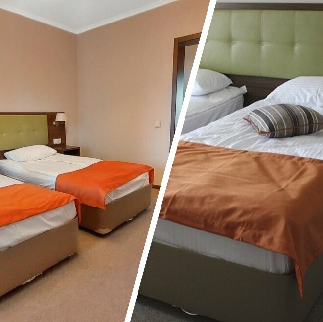 В номере: 2 односпальные кровати, мебель ручной работы из массива карельской сосны, мини-холодильник, Wi-Fi, ЖК телевизор, фен, душ, туалет