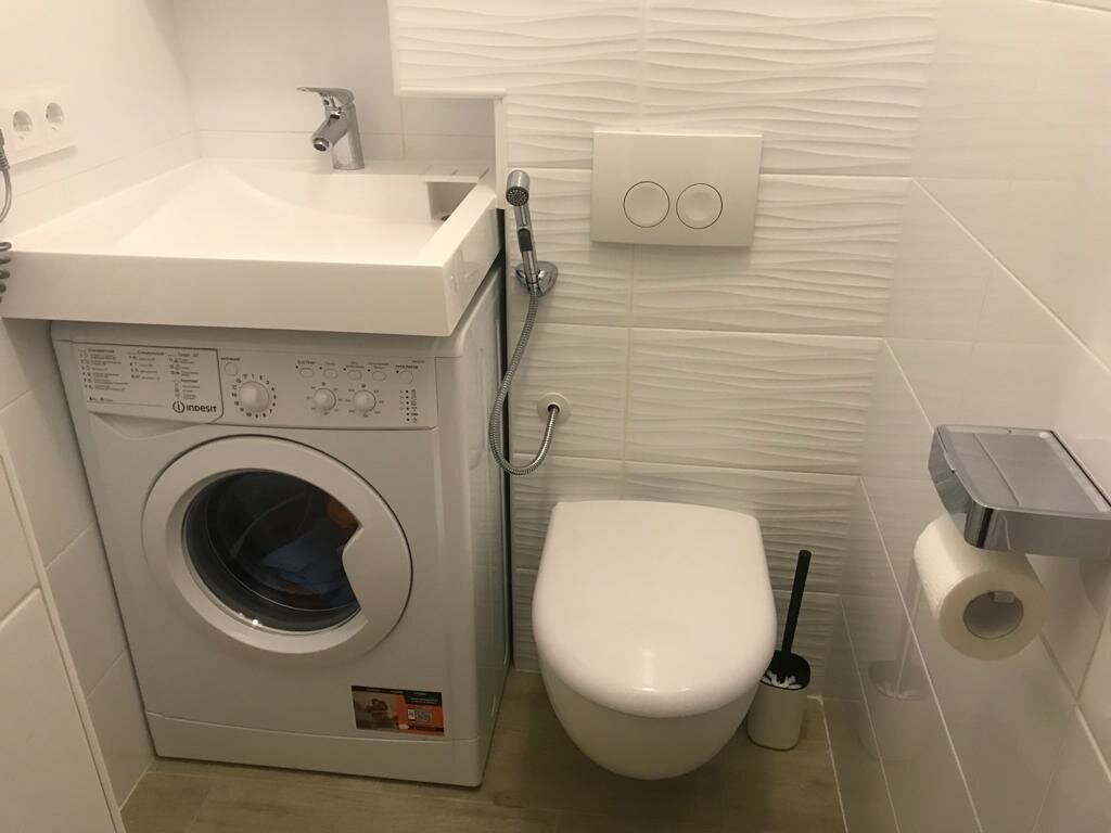 Апартаменты категории Комфорт площадью 21 кв м. Импульсный унитаз с биде, душ с гидромассажем, полноценная кухня с газовой плитой, духовкой, посудомойкой и кофемашиной.
