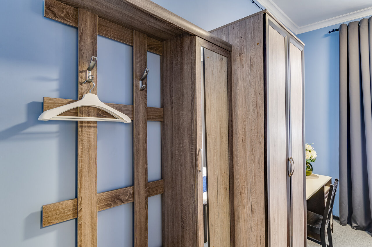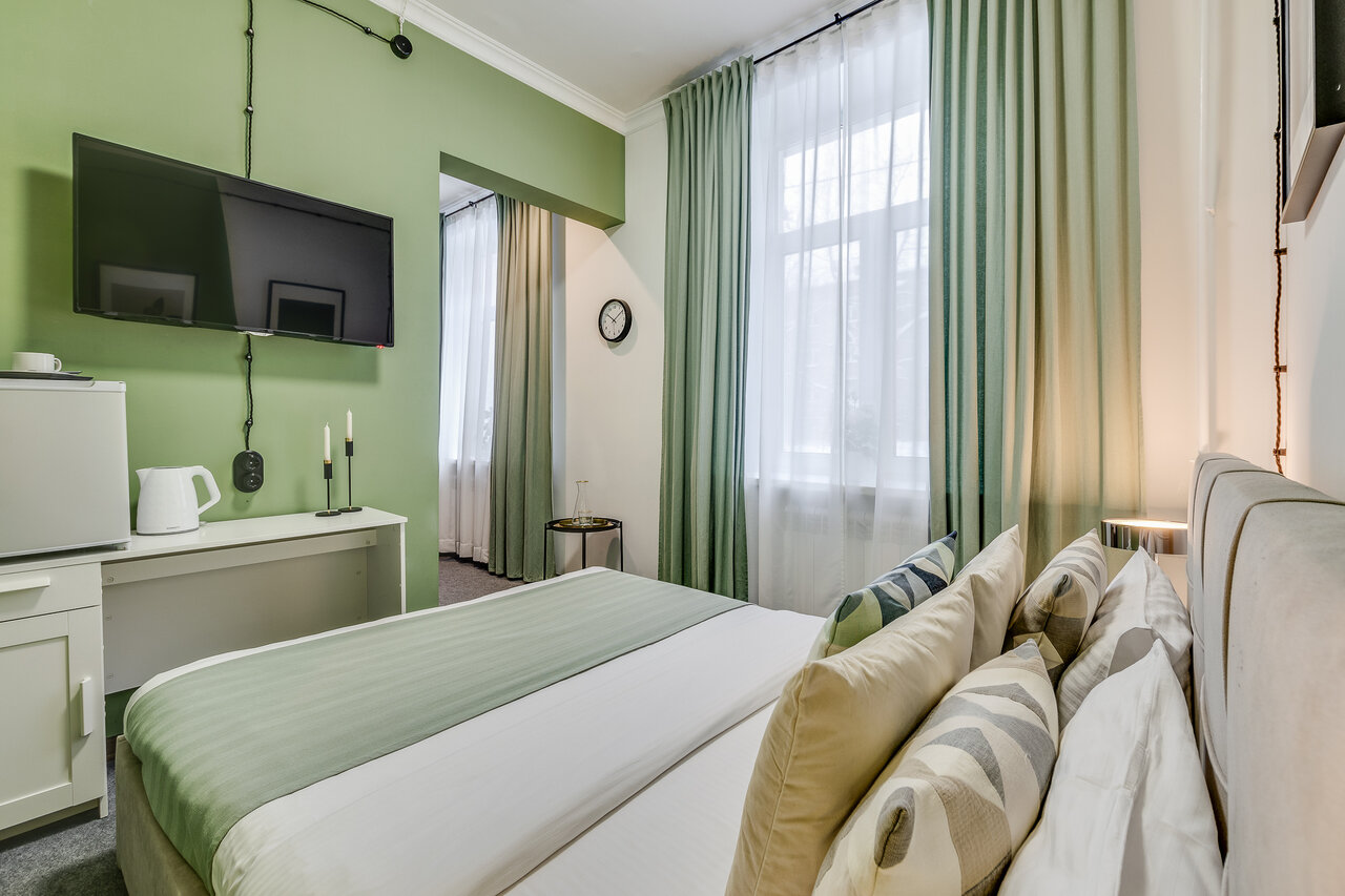 Площадь 23 м² Кровать Кing sizeШкафЗеркалоТелевизорХолодильникСейфДушевая кабинаТуалетПостельное бельеПолотенцаТуалетные принадлежностиТапочки