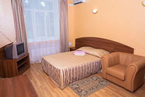Комфортабельный уютный номер с большой двуспальной кроватью, собственным санузлом с душевой кабиной.В номере: кондиционер, фен, рабочая зона, телевизор, средства личной гигиены,тапочки, бесплатный wi fi, Шкаф-купе, бесплатное парковочное место.