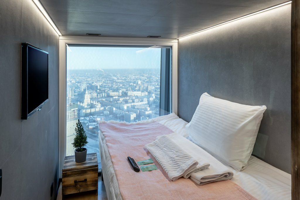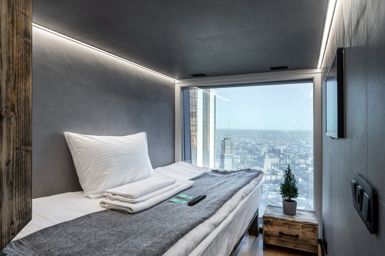 Приезжали с подругой в Москву на Гонку Героев летом 2021 г. и забронировали капсулы в этом отеле. Отличное место, нам очень понравилось там! Он находится на 84-м этаже башни Федерация Восток. Здесь приятный персонал, отличный сервис и цены. Вид на Москву из отеля потрясающий! Всем рекомендую!