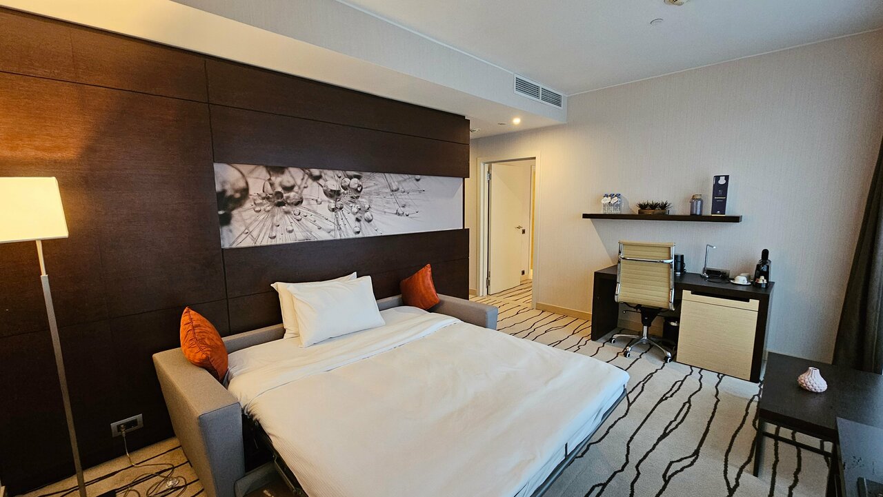 Плюсы: расположен буквально напротив аэропорта Внуково, что удобно, если нужно провести время между полетами. Красивый уютный интерьер. Минусы: кратко — беда с вентиляцией в номере, душно и поэтому сложно спать. Длинно — именно в нашем номере были проблемы с кондиционером, было очень душно, поэтому толком не выспались. Так как это была ночевка между 2 перелетами, разбираться с этим не был ни сил ни желания. Почему это очень тригернуло? Потому что мы останавливались именно в этом отеле впервые и нам как новым гостям сразу подсунули номер с дефектом. Неужели в отеле такого уровня подобные нюансы не учитываются? В общем лично я больше не буду там останавливаться, в городе неподалеку есть много других вариантов переночевать между полетами.