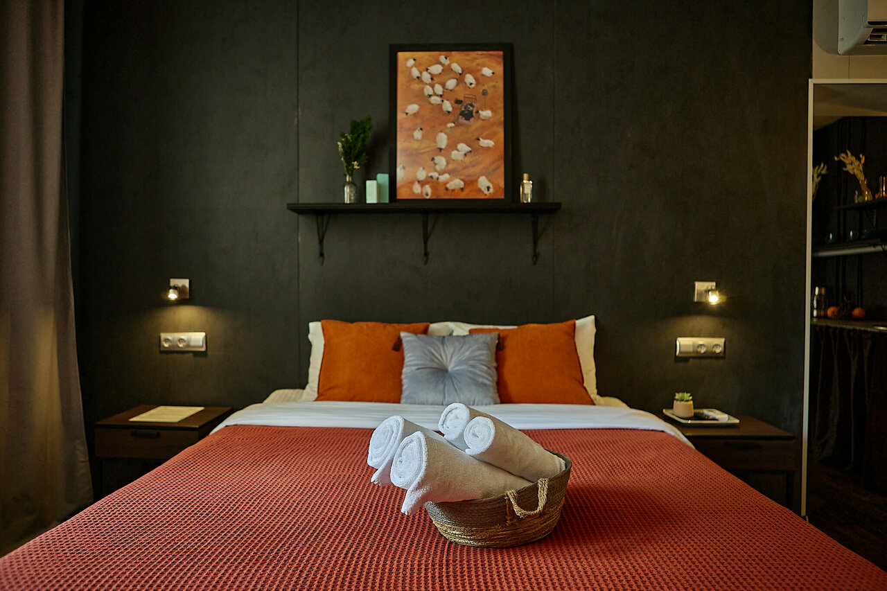 Брали двухместный номер с кухней. Стильный и чистый номер, обалденная мягкая кровать, Яндекс ТВ с подпиской. Вежливый администратор в Вотсапе, без проблем заселились (номер был готов даже раньше стандартного времени заезда). Удобное расположение, безопасный район. Единственное что стены тонковаты, но несмотря на это ночью было тихо (мы 3 ночи были), отлично выспались. И ещё в номере были подготовленны беруши — мелочь, а приятно. Я как раз свои в поездку не брал. Но они в итоге и не понадобились.
