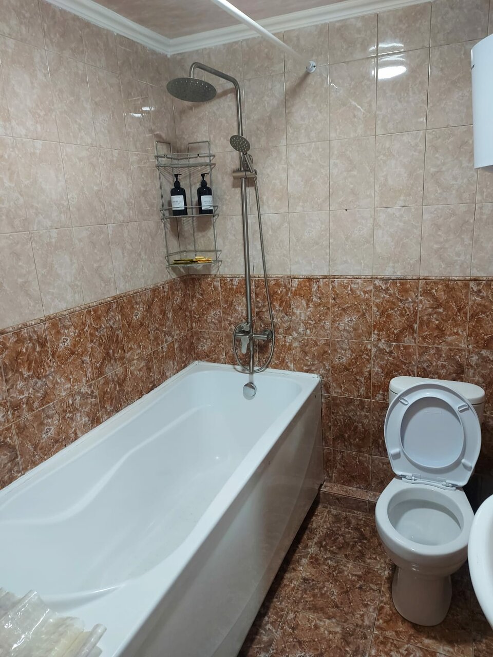 Ванна грязная, горячий вода нет. Вода обогреватели хорошо не работает. Когда купаешся воды не идёт, запоры. Телевизор хорошо не показывает, старый телек, и музыкальный каналы вообще нет. Внизу есть кафе типа, там одна женщина есть продавица, такая высокомерная и не одекватная, и цены там слишком дороже в двое!!!