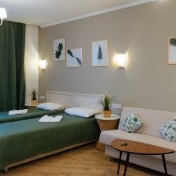 Улучшенный двухместный номер с двумя односпальными кроватями и доп местом, собственной кухней, с/у и стиральной машиной. Номер оснащен всем необходимым для комфортного проживания.
