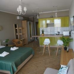 Останавливались в этом а парт-отеле на сутки (28.07.-29.07.) и что хочу отметить особенно это чистота, наличие шампуней, гелей для душа, зубные щётки с пастой в достаточном количестве. А дизайн номеров отдельная тема. Глазу очень понравилось. Это прям визитная карточка. Есть балкончик. Удобная кровать, в частности матрас. Наличие доп места. Наличие бутылок с питьевой водой, чай, кофе, сахар, столовые приборы, чайник. Знаю, что в других категориях номеров есть мини кухня, остров с барными стульями. Приветливый администратор. Достаточное количество полотенец. Супер! Вернёмся сюда однозначно. Ценник за это все очень даже приемлемый.