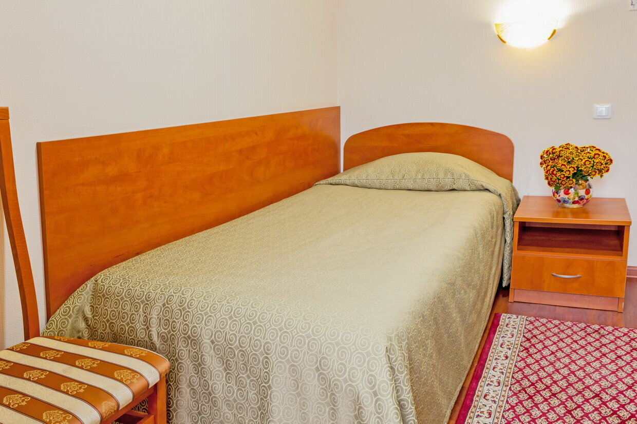 Одноместный номер площадью 24 м². Собственная ванная комната. Отдельный вход. Номер на первом этаже. Предоставляются туалетно-косметические принадлежности. Вид: во внутренний дворик. В стоимость включен завтрак. Стоимость может изменяться в зависи...