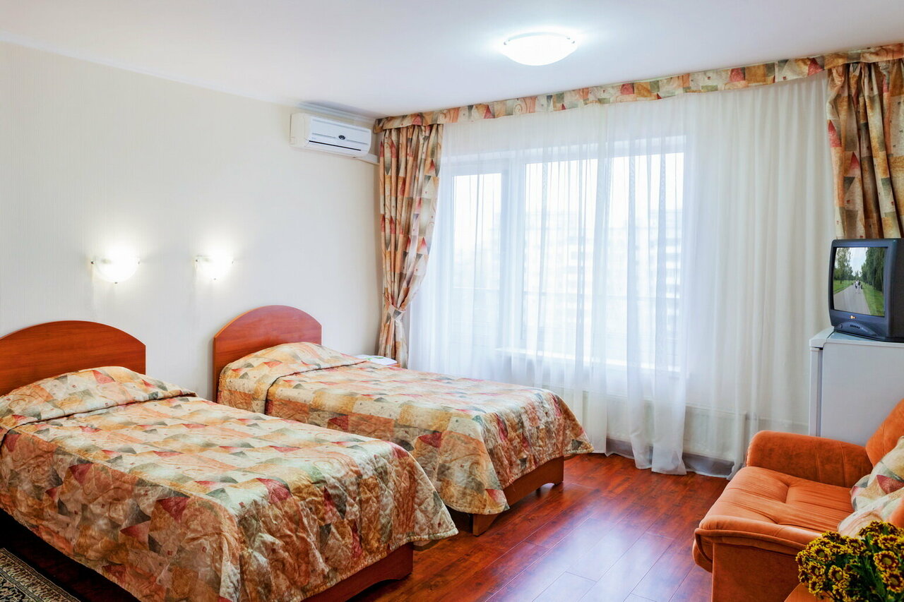 Проживали в феврале в двухместном номере. Номер чистый, но какой-то неуютный. Было очень холоднов номере. Телевизор работал через раз. Но для переночевать с дороги номер сгодится. Рядом с отелем особо нет никакой инфраструктуры. Поесть можно наверное только в кафе отеля. Из магазинов рядом вкусвилл.