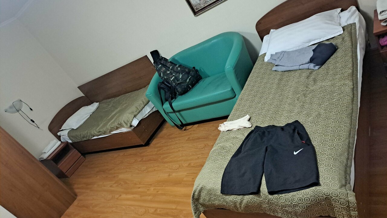 номер 'Стандарт'. В номере есть две односпальные кровати,санузел(душ,унитаз),чайный столик,телевизор. Максимальное размещение 2 человека.