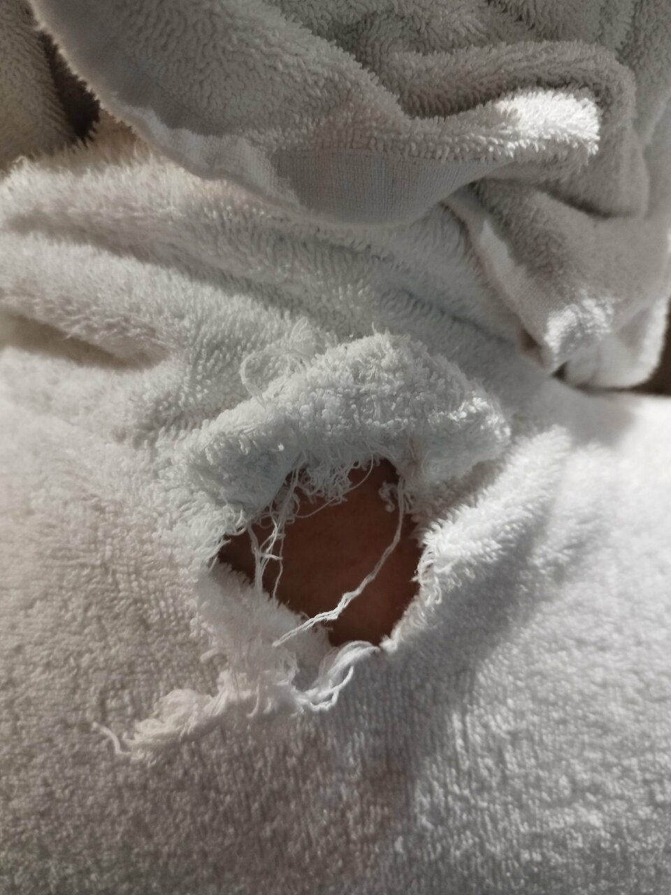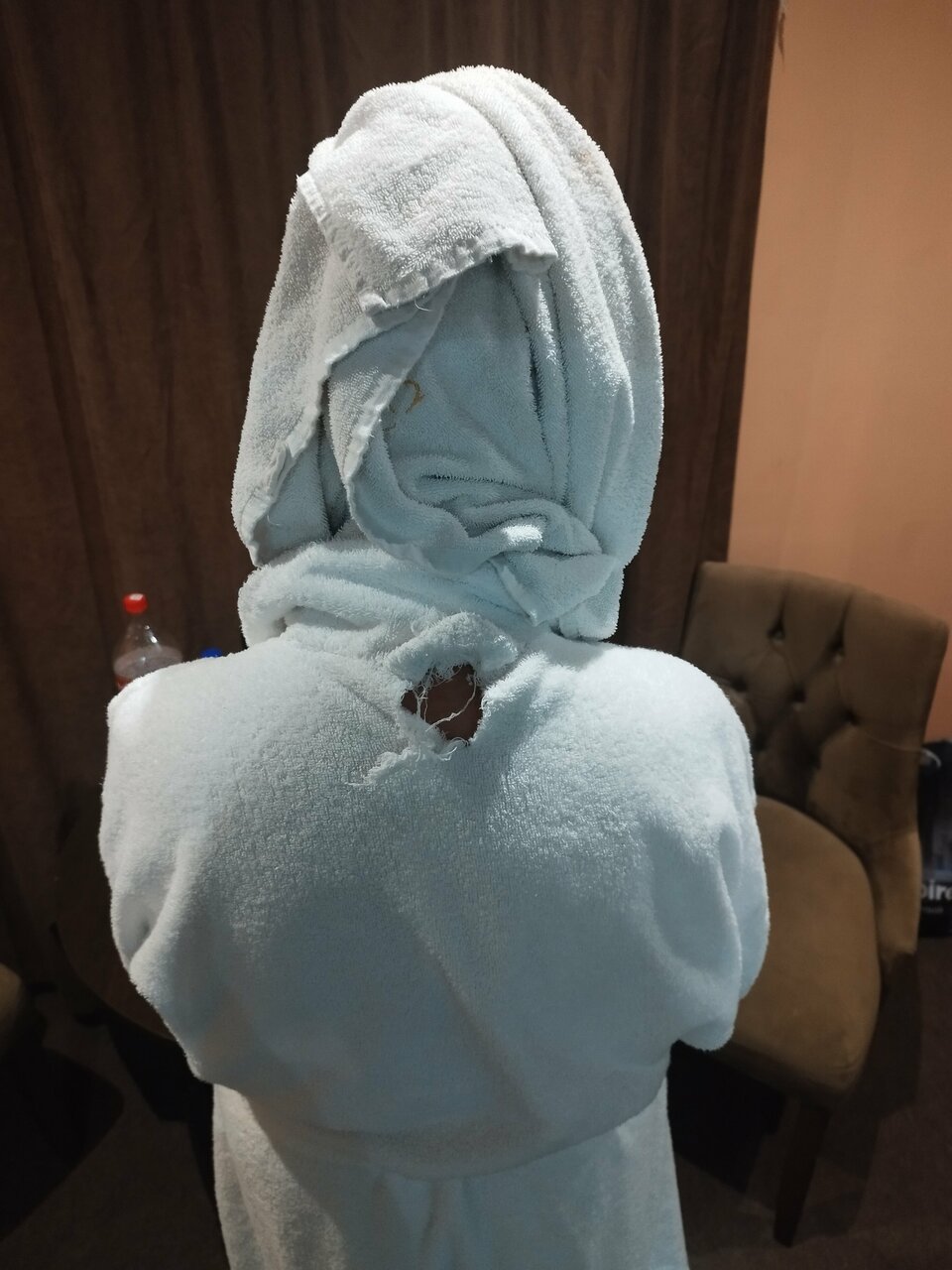 Снял типа люкс ,потому что последний остался,но объясните как может быть люкс ,когда халат выглядит ,что его выбрасывать надо ,нитки торчат