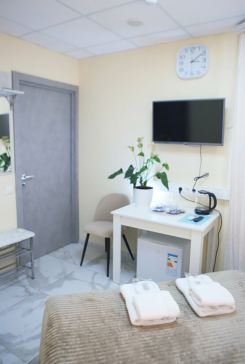 - Наличие всех необходимых принадлежностей (чайник, холодильник, гигиенические средства).