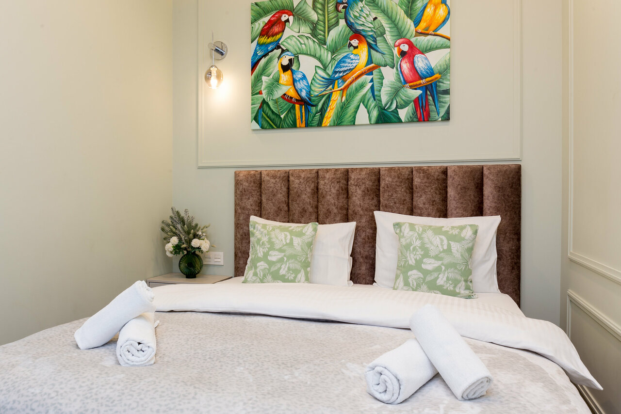 Невероятно уютный апартамент создаст для Вас летнее настроение и уют! Спешите сделать бронирование лета! Идеально также подойдет и для семей с детками, т.к. в апартаменте помимо большой двуспальной кровати также имеется двуспальный раскладной дива...
