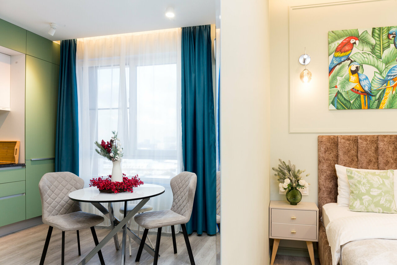 Провела замечательный отпуск в очень красивых апартаментах!!! Все на высоте: очень чисто и уютно. Кухня хорошо оборудована, есть все необходимое: холодильник, микроволновая печь, кофеварка, функциональная плита. Ремонт сделан со вкусом. Видно, что владелец подошел креативно и сделал собственный дизайн. Все стильно и много света, апартаменты очень светлые. Торговый центр рядом, можно купить продукты и что-то из одежды. Хорошее расположение. До центра максимум 20 минут на метро, либо можно доехать на автобусе. Также недавно открыли БКЛ и МЦД. За 5 минут доехали до парка Сокольники с детьми и замечательно провели там время. Также хочется отметить работу администратора Наргиз. Она всегда на связи и поможет решить все возникающие проблемы в течении короткого времени. Клиентоориентированная и поддерживает сервис на высоком уровне. Следующий отпуск планирую провести только у вас.
