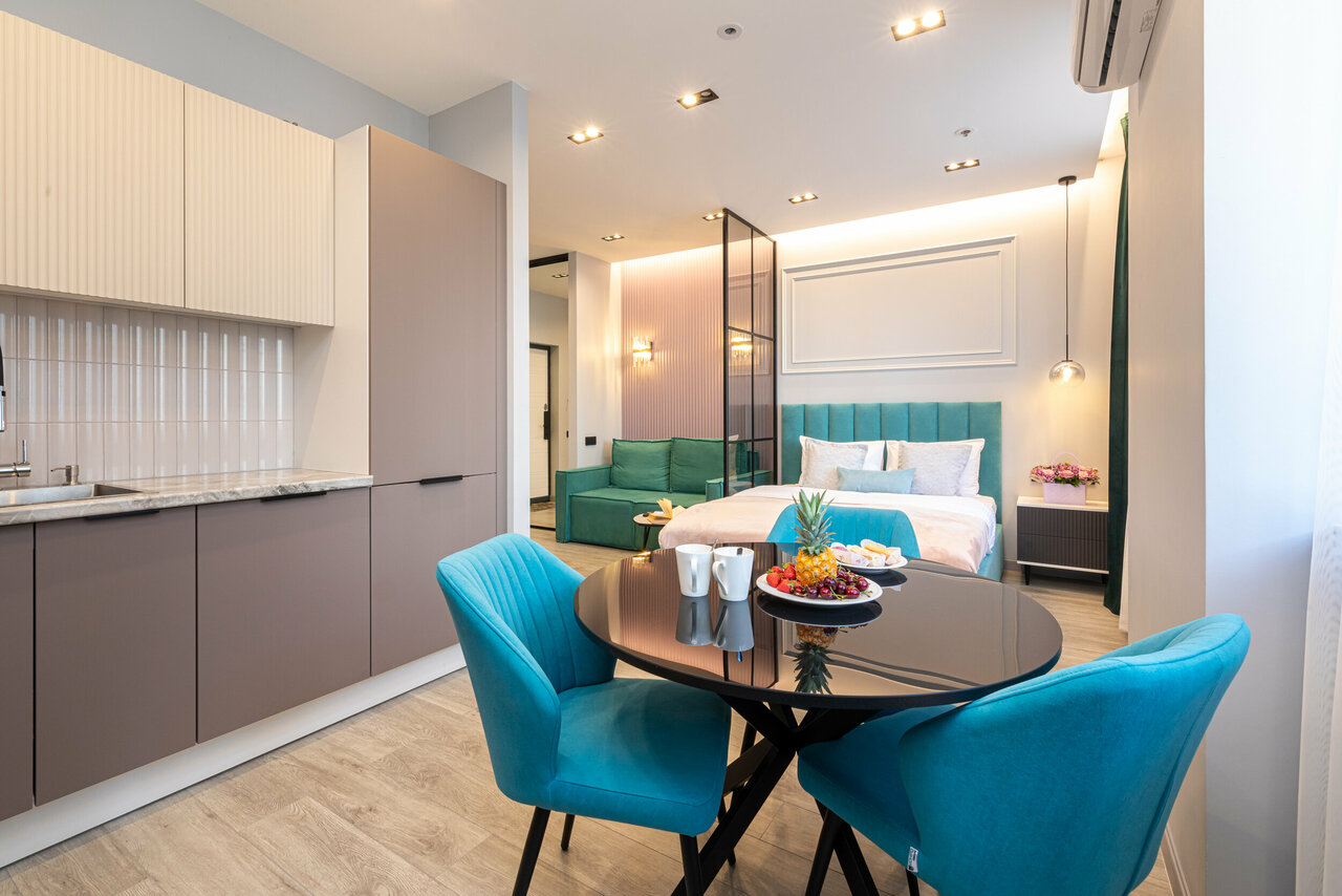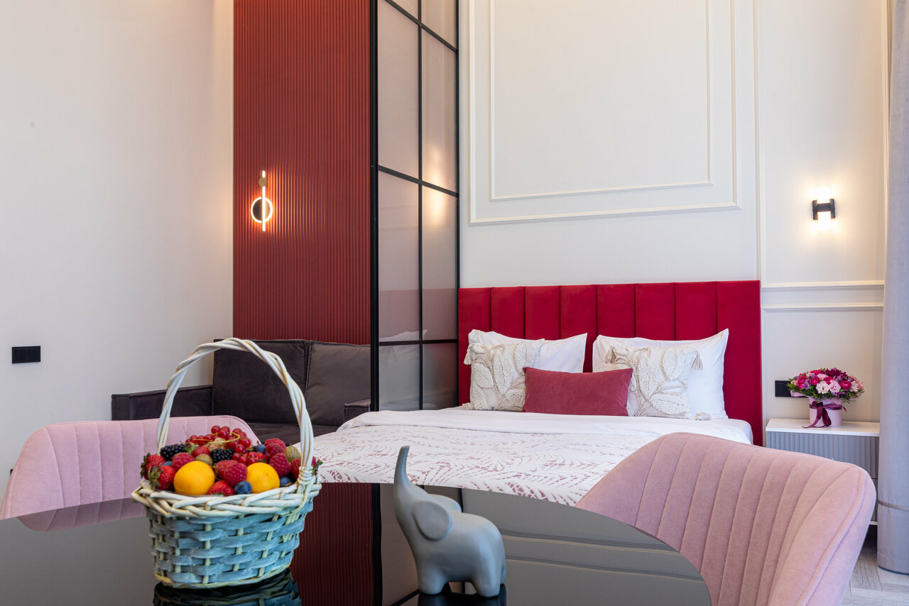 Соблазнительный стиль, в степени отдыха и желания свободы, комфорта с дерзкими отношениями, место отдыха сладкого и вкусного. Долой скучные цвета, насладитесь гармонией и эстетикой в наших прекрасных апартаментах!