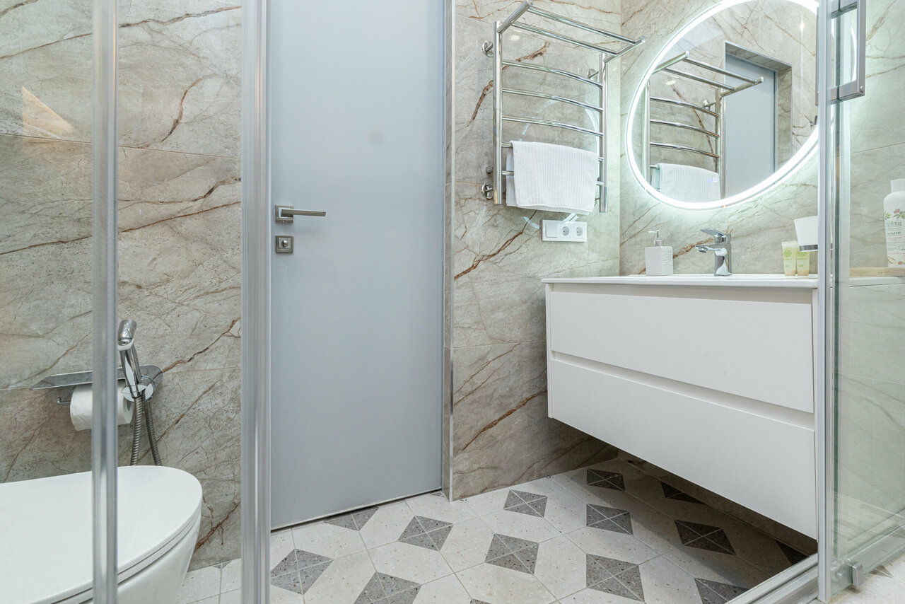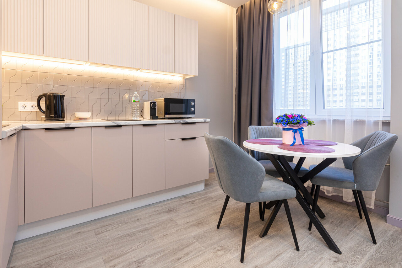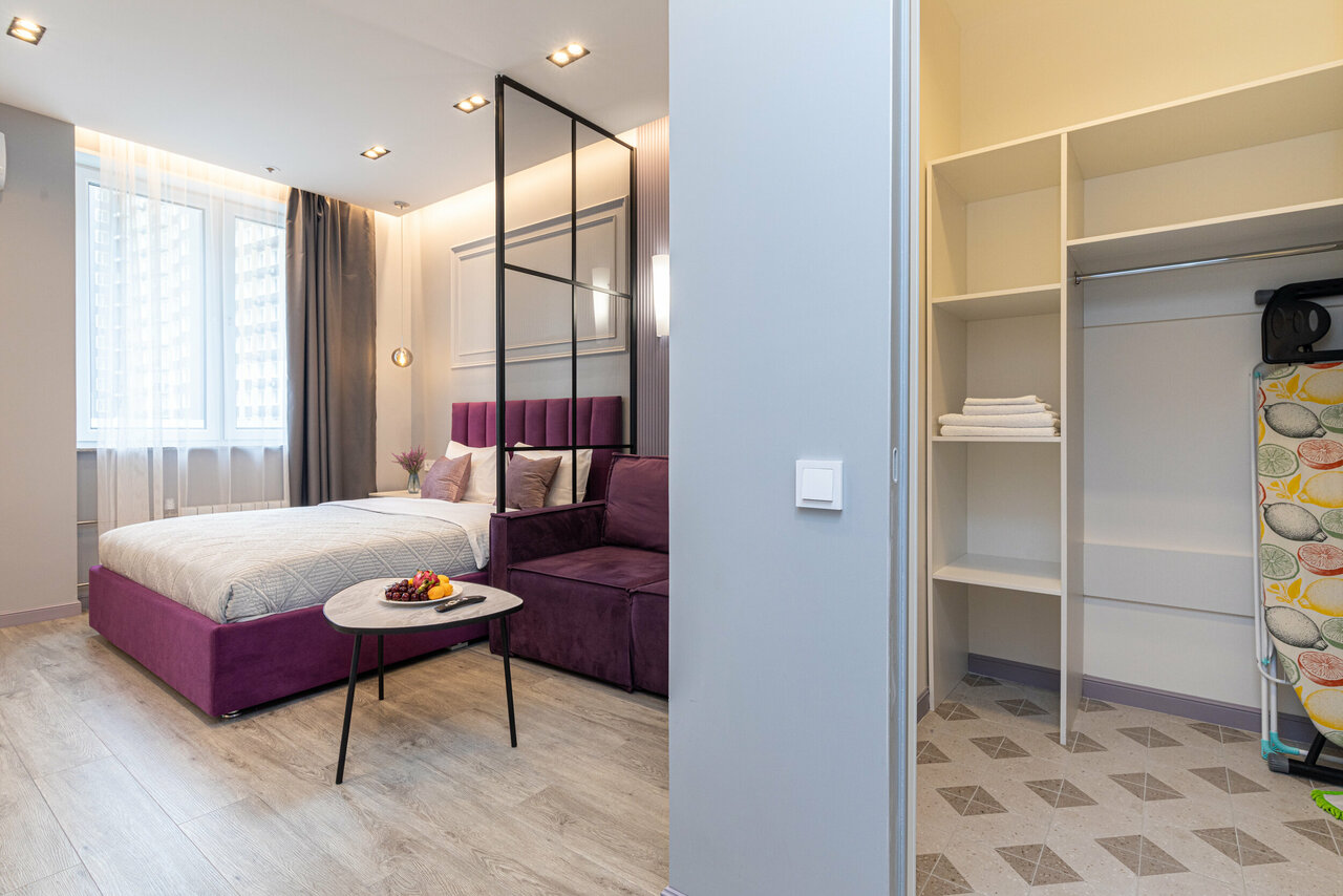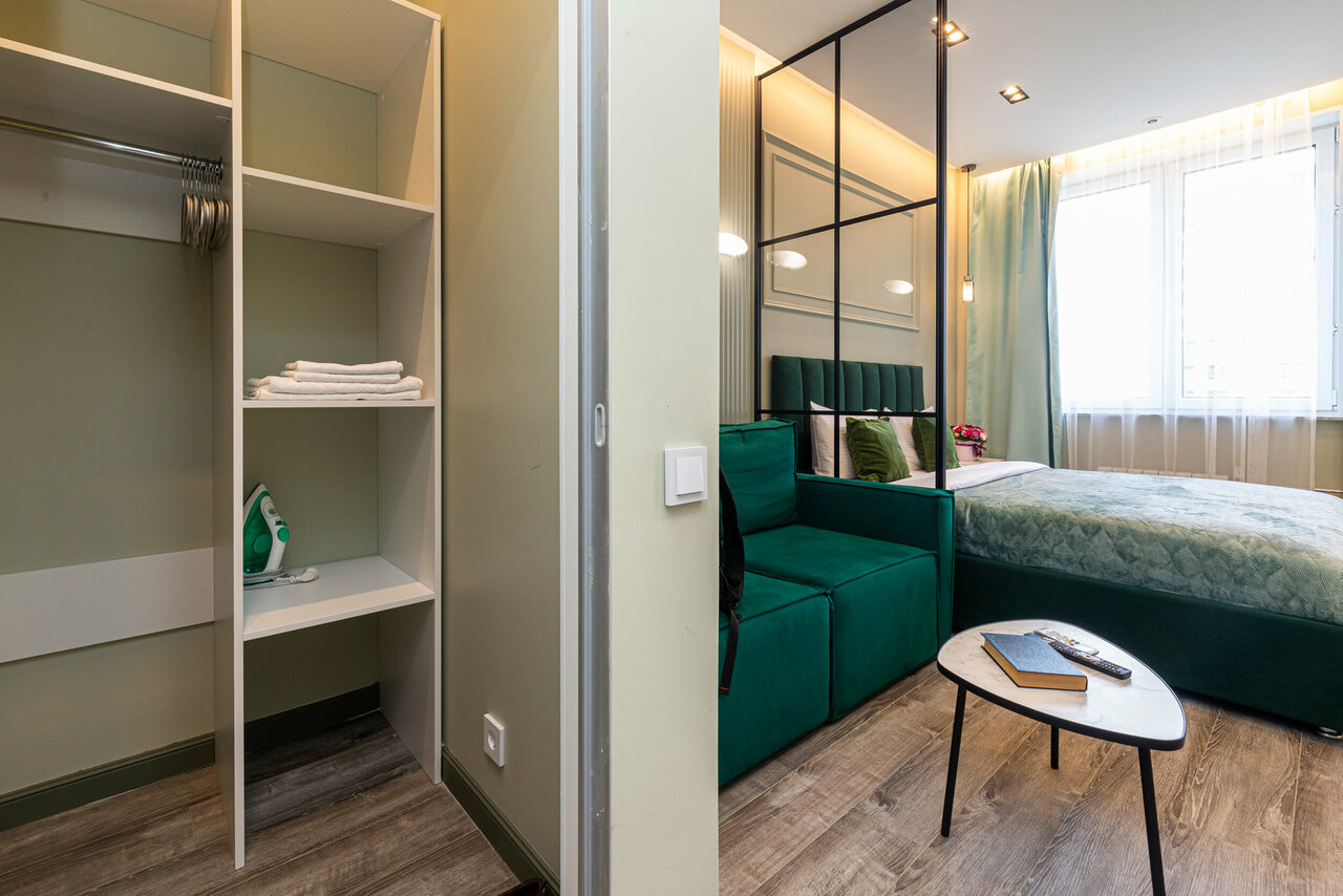 Апартаменты очень понравились! Особенно хочу отметить чистоту, нет никаких посторонних запахов, идеально чистое, отглаженное постельное белье(мне это очень важно) Рядом много продуктовых магазинов, курьеры так же приезжают быстро. Очень стильный, свежий ремонт. Удобное бесконтактное заселение и связь в вотсапе по любым вопросам, очень приятный сервис! Огромный плюс — стиральная машина, гладильная доска, утюг, исправно работающий кондиционер. Большая гардеробная. Парковка прямо по периметру апартаментов, если будете на машине, никаких проблем с паркингом нет Минусов назвать не могу, осталось только приятное впечатление!