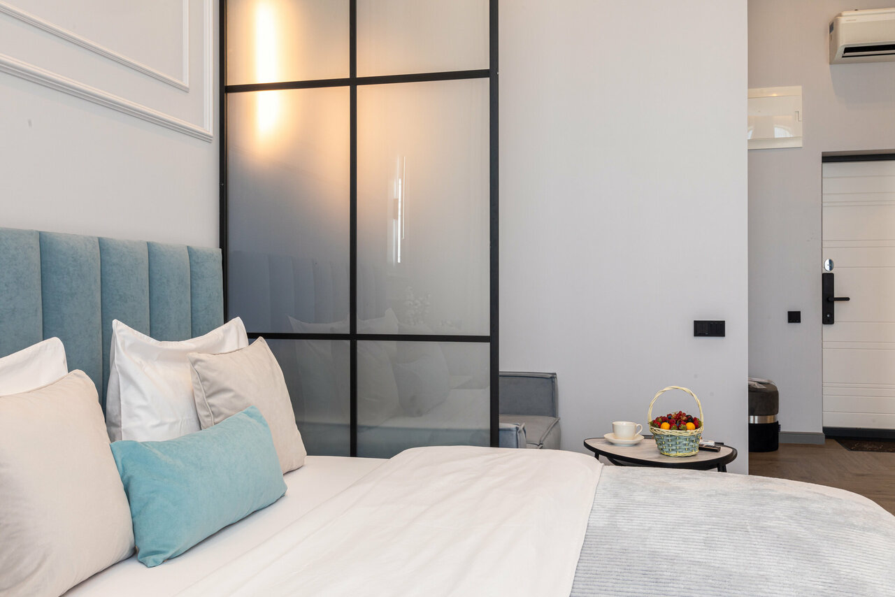 В ситуации внешней нестабильности, каких-то серьёзных мировых вызовов мы решили создать особую гармонию в наших апартаментах , и в первую очередь в интерьере. Мы постарались создать интерьер-антистресс и релакс. Мы хотим, чтобы интерьер был не про...