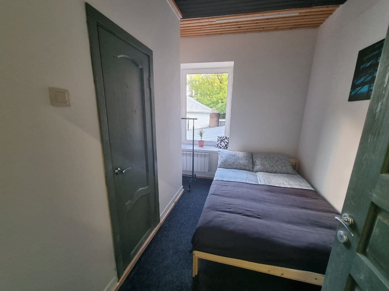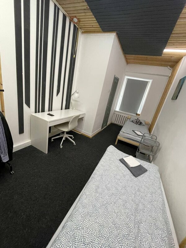 Прекрасное расположен. Отличная дружелюбная и отзывчивая девушка-администратор. В общей зоне есть утюг, микроволновка, чайник. Довольно удобно. Номер был трёхместный. Светлый. С собственной ванной. В номере полотенца. Фен на ресепшен. Всё ок. Но! Очень грязно: ковролин давно не пылесосили, много волос, плитка на полу в ванной тоже усыпана волосами. Слив в поддоне засорен, вода долго стекала. Для хостела общее состояние хорошее.