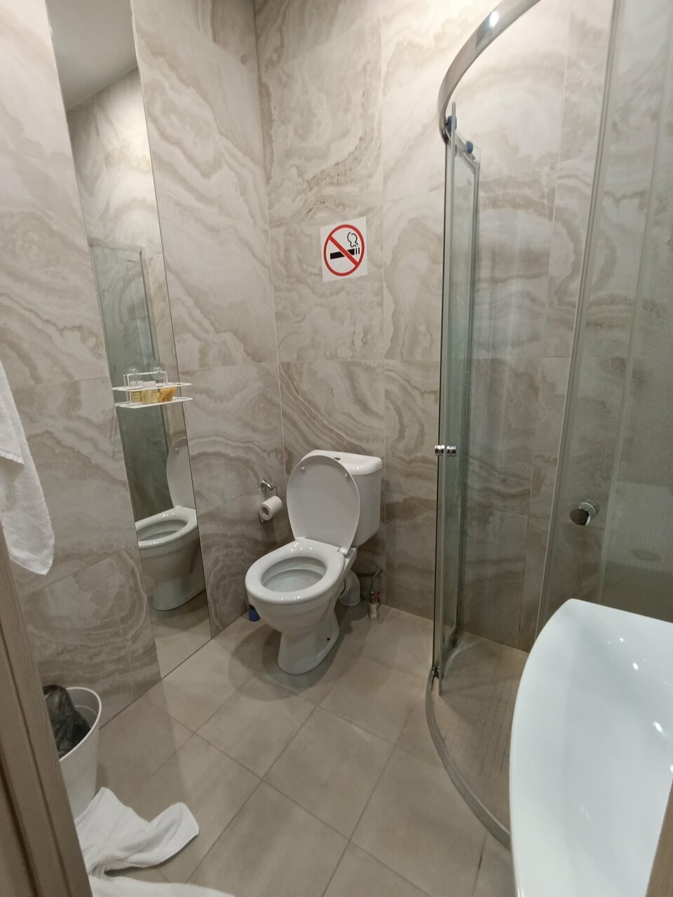 Отличное место! Согласна со всеми отзывами про комфорт, радушие, доброжелательность, удобство по расположению. Дополню тем, что мне не хватило в отзывах : ванная комната есть, она отделена в коридорчик к основной комнате и очень аккуратно оформлена. В номере было тепло, телевизор работает и есть доступ в интернет. Своя парковка, что просто огонь! И быстрый доступ с парковки в номер. Есть возможность постирать вещи, что тоже очень хорошо, особенно с дороги. Вай фай хорошо работает. Внизу есть вполне себе хорошее кафе, и, магазин текстиля. Я не ушла оттуда с пустыми руками Однозначно рекомендую!