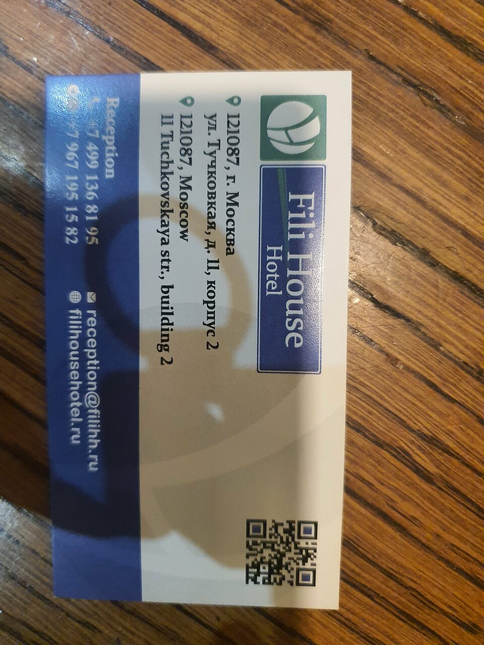 Контакты: ☎ +7 (499) 136-81-95 www.filihousehotel.ru Заезд: 14:00, выезд: 12:00.