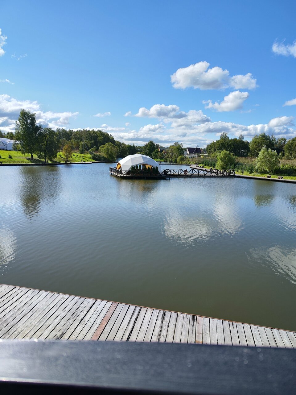 Отличное место, отдыхали с коллективом. Уютные беседки, чистые туалеты, красивая территория. Рыбы поймали мало)