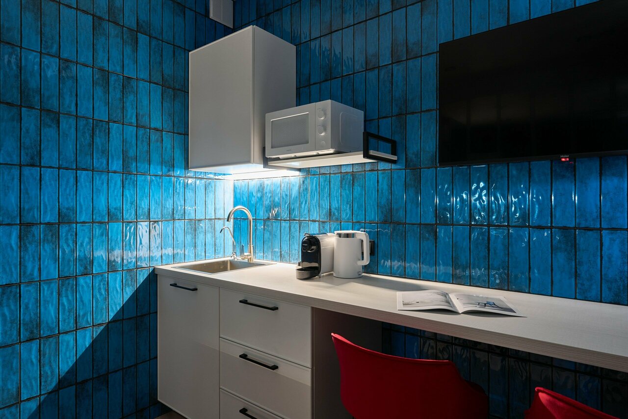 Предоставляет комфортные номера с кондиционером, Wi-Fi, телевизором, кухней или кухонным уголком (плита, микроволновка, посуда, чайник, кофеварка), душевой кабиной, холодильником и феном. Доступны услуги ускоренной регистрации, уборки, стиральная машина и утюг.