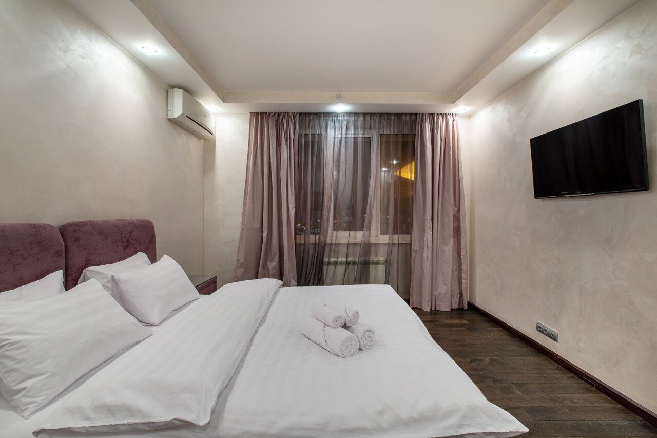 Ультра- современные и просторные апартаменты на Беговой, вместимость 9 человек. Цифровое TV. - Современное, натуральное спальное белье. - Банные принадлежности, средства для душа и личной гигиены, тапочки.