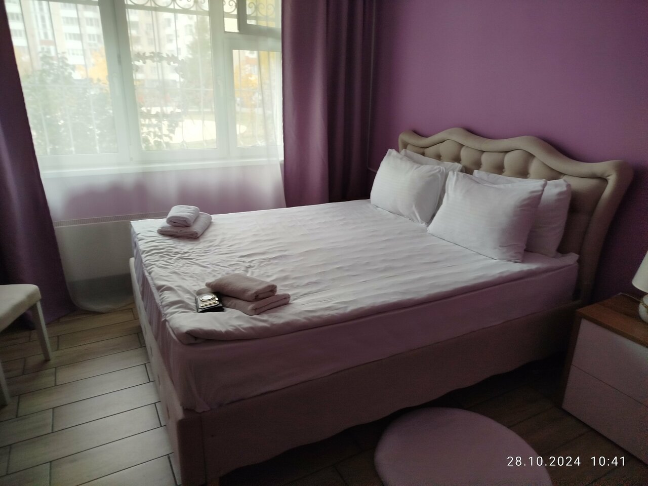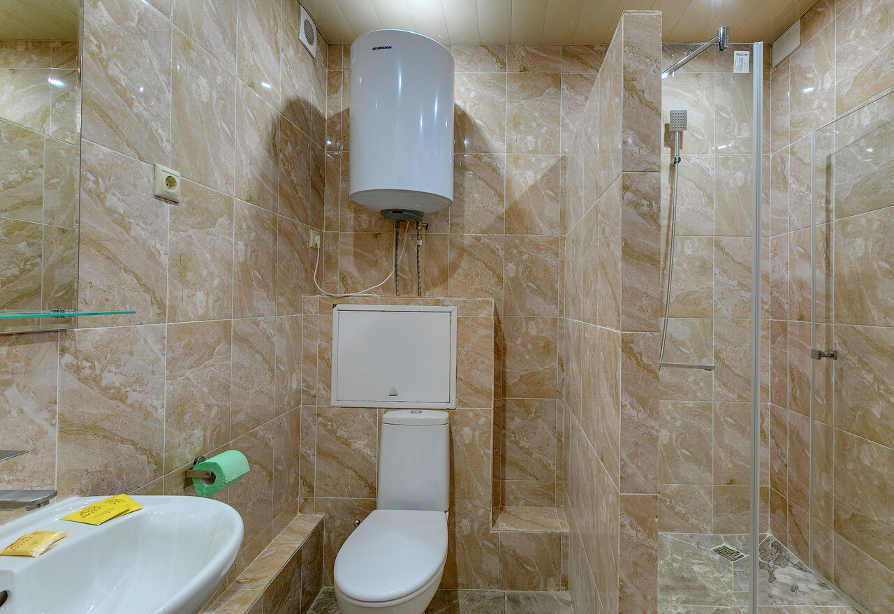 Снимал номер с женой на 2 часа (захотелось романтики). Стоило это ‘счастье’ 1700, сколько за сутки не спрашивал. Номер с двуспальной кроватью и совмещнным санузлом с душем. Одноразовые гель и шампунь есть, а вот зубной пасты и щётки нет. Так же есть халаты полотенца и одноразовые тапочки, но в шкафу, почему-то, только одна свободная вешалка (тремпель, плечики, кому как понятнее) помимо ещё двух, на которых висят халаты. Отдельного внимания стоит кровать, матрас на ней тонкий и слишком мягкий, настолько, что упираясь коленом или рукой, чувствуешь все доски под ним, т.е. он вообще без пружин. Странная дешвка для отеля. В общем было не комфортно. Всем добра и счастья!