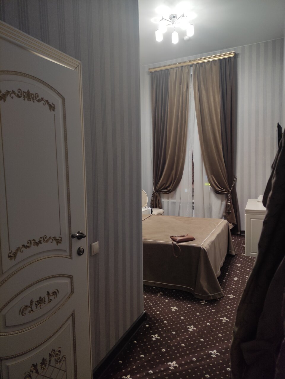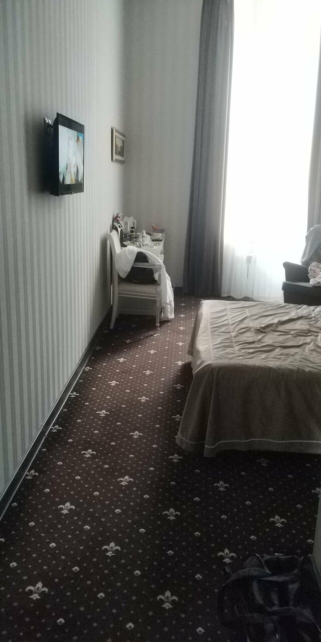Отличное место расположения. Отличная цена. Прекрасный персонал. Высоченные потолки в номере, все чисто, аккуратно, имеется холодильник, чай и кофе, все банные принадлежности и халат, что не маловажно в поездке.