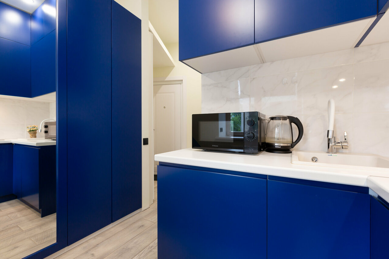 Студия рядом и НМИЦ Колопроктологии им. А.Н. Рыжих.Скидки до 15% при длительном проживании!Светлая студия в голубых оттенках в Голландском доме.Метро Народное Ополчение (10 м. пешком)В квартире есть все необходимое для проживания 2-х человек.