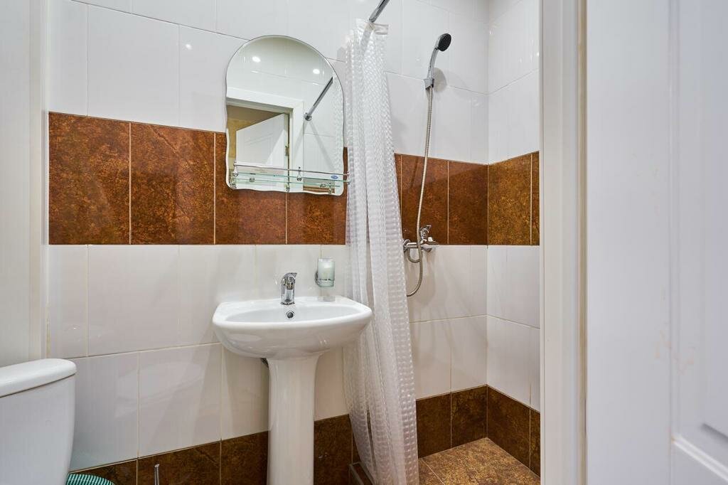 Просторный светлый номер 22-25 м² на первом этаже, окна выходят в тихий внутренний дворик.В номере: санузел с душевой кабиной, фен, туалетные принадлежности, халаты, полотенца, Wi-Fi, TV, тел., холодильник. В некоторых номерах есть кондиционер.