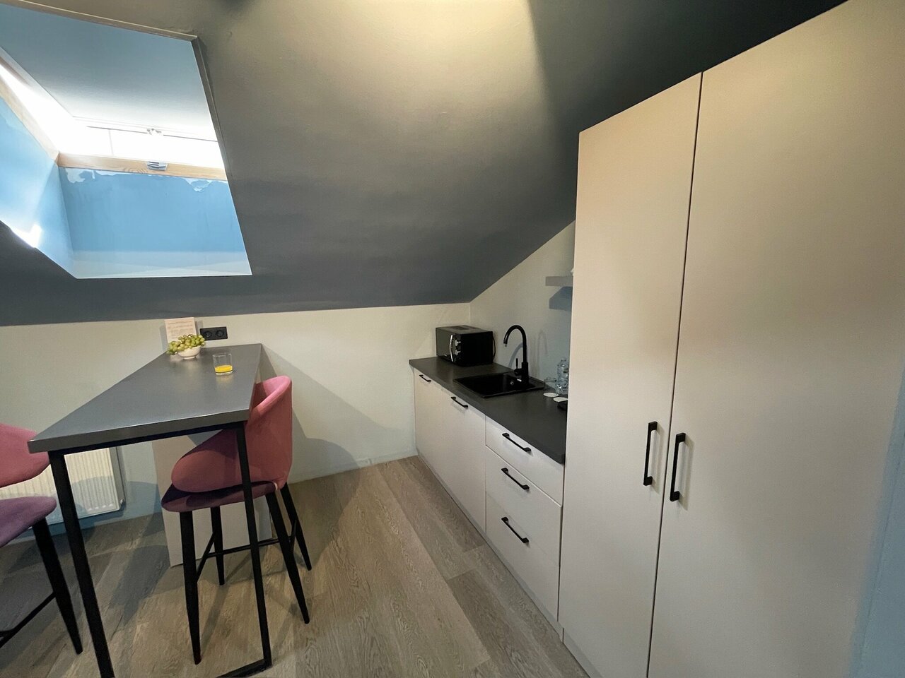 Чистый, стильный и уютный отель. Есть чайник, электрическая плитка, холодильник. Вкусные завтраки.