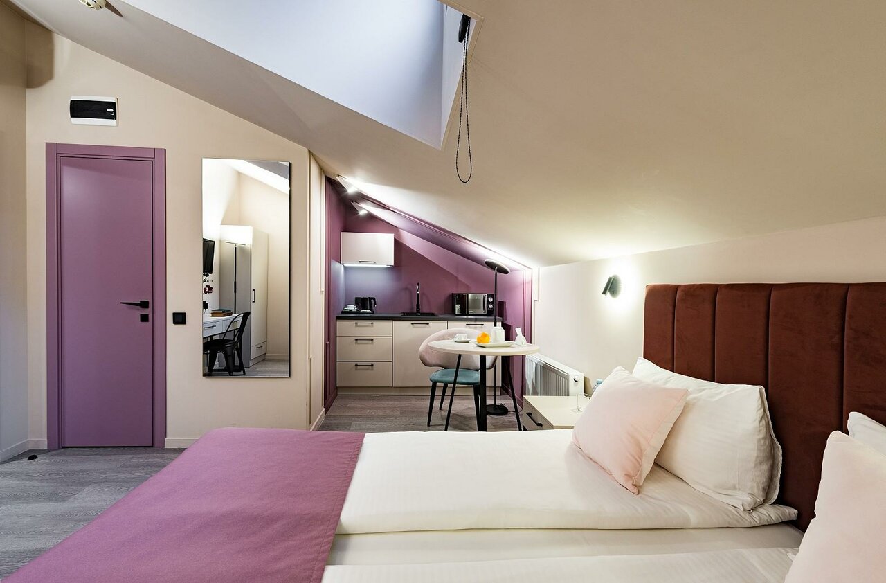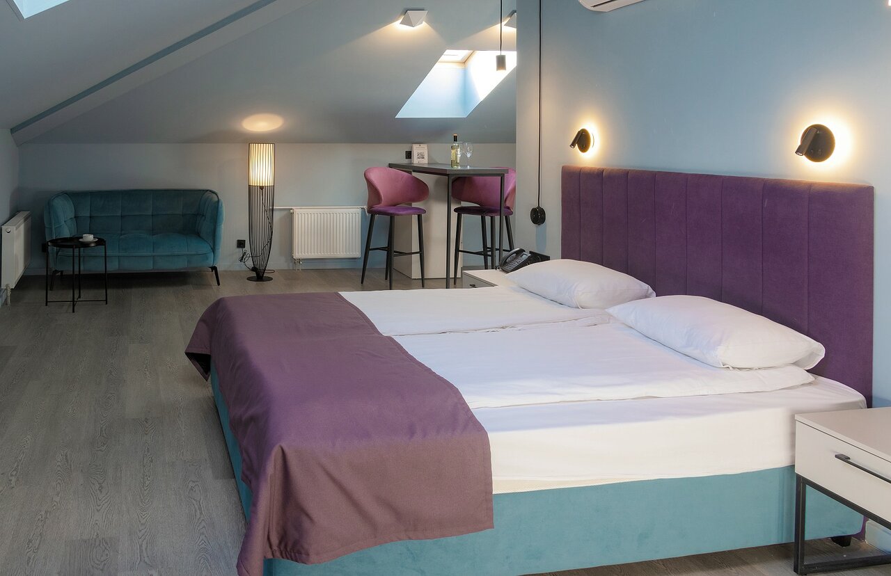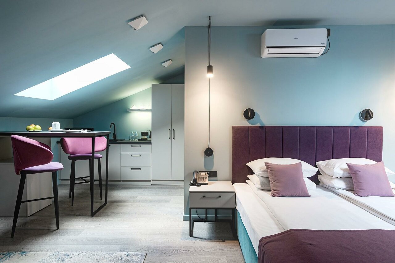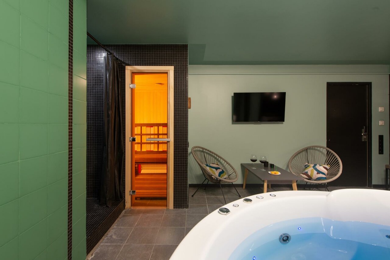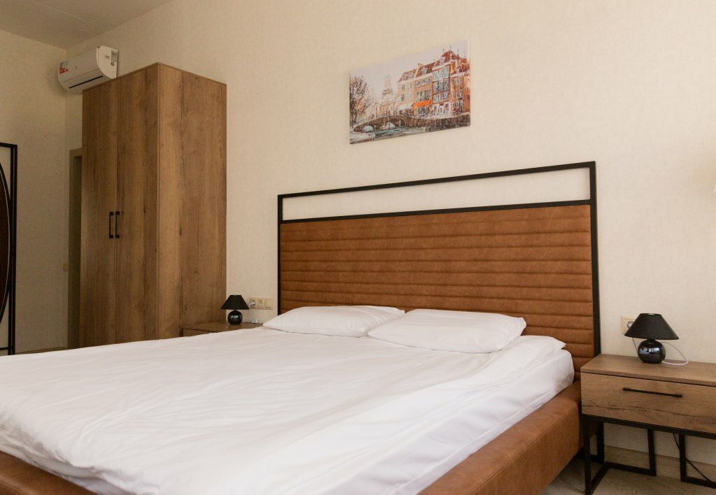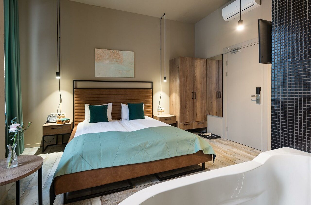 Удобства: — Номера с кондиционером, Wi-Fi, ТВ, феном, сейфом, кухонной зоной (плита, микроволновка, посуда). — Варианты с джакузи, сауной или видами из окна. — Звукоизоляция, детские кроватки (бесплатно до 3 лет), spa-услуги. — Бесплатные: камера хранения, интернет, чай/кофе в номере.