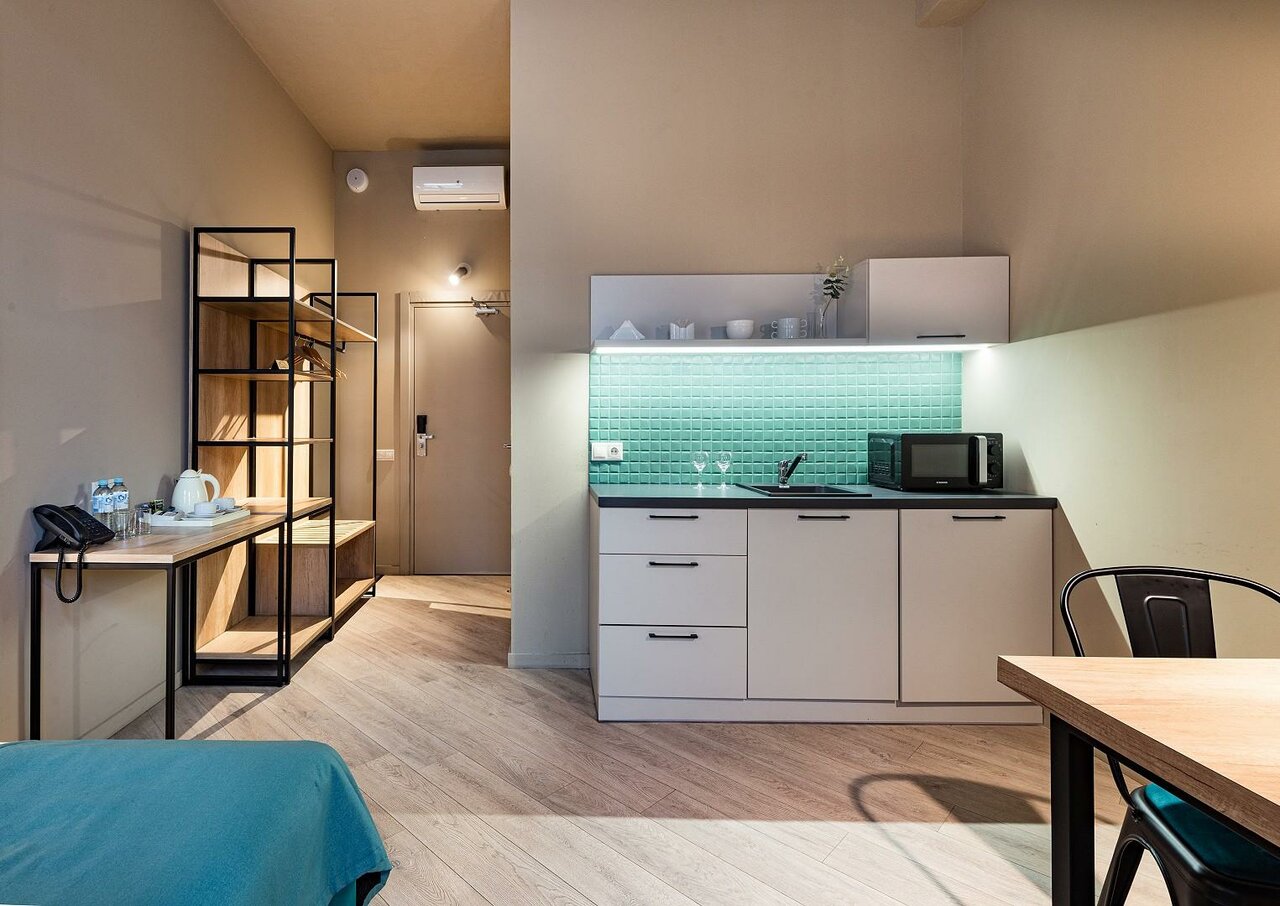 Тихий, уютный отель. Большой плюс наличие в номере небольшой кухни. Чистота, порядок, приветливый персонал. Каждый день пополнение в номере воды, чая, шампуня. Скидки при бронировании на несколько дней. Наличие завтрака, который обещали пополнить кашей. Отличное расположение, от метро минут пять. Спасибо большое!