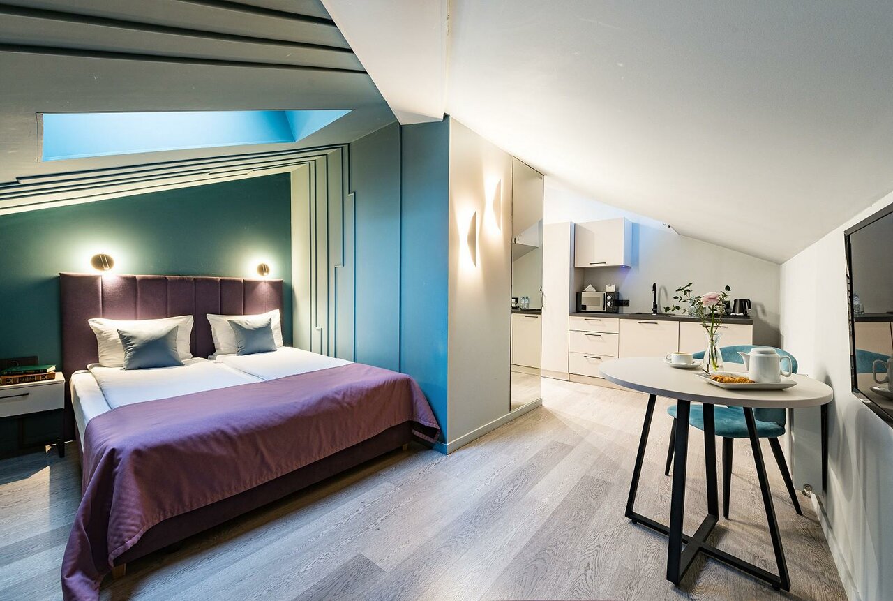 Отличный отель, отличный персонал. Заехали раньше, но номера , конечно , были ещё не свободны. Персонал сделал все, чтобы нам было удобно: разместили вещи, предложили завтрак, мы смогли переодется, привести себя в порядок. Комнаты чистые, удобные. У нас была комната с кухней. Очень удобно. Для готовки есть плита и посуда. Постельное чистое, подушки, кровати удобные. Расположение отеля стратегически удобное Рекомендую отель. Спасибо за гостеприимство.
