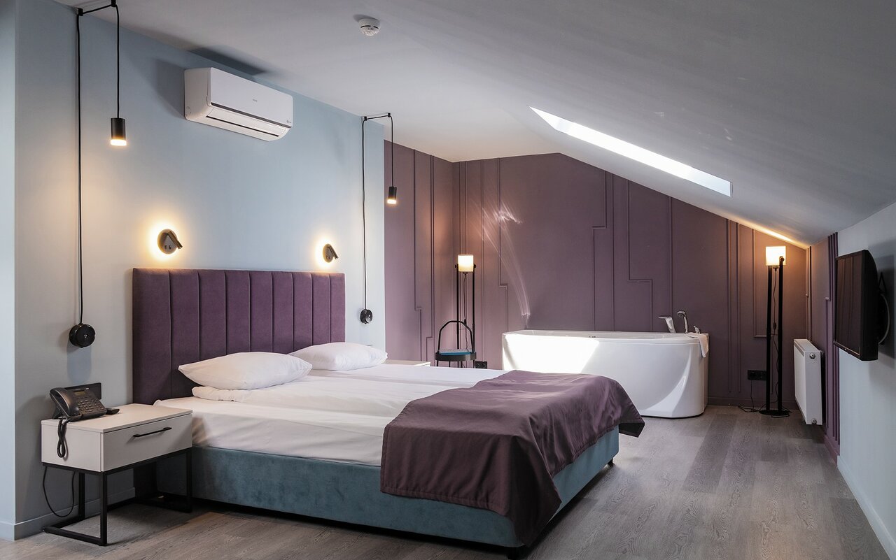 Когда останавливались в этой гостинице бронировали люкс с гидромассажной ванной. Номер просто замечательный, чистый, светлый, с современной мебелью и техникой. Внутри есть все необходимые условия для комфортного пребывания, даже прачечная. Без лишнего напоминания предоставили детскую кроватку, как мы и просили при бронировании. Кушали в кафе, все понравилось.